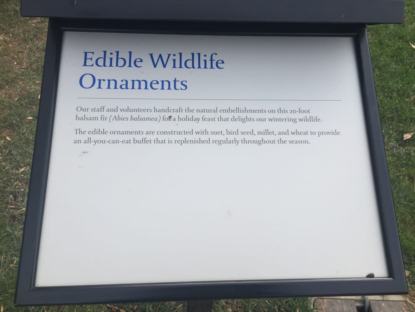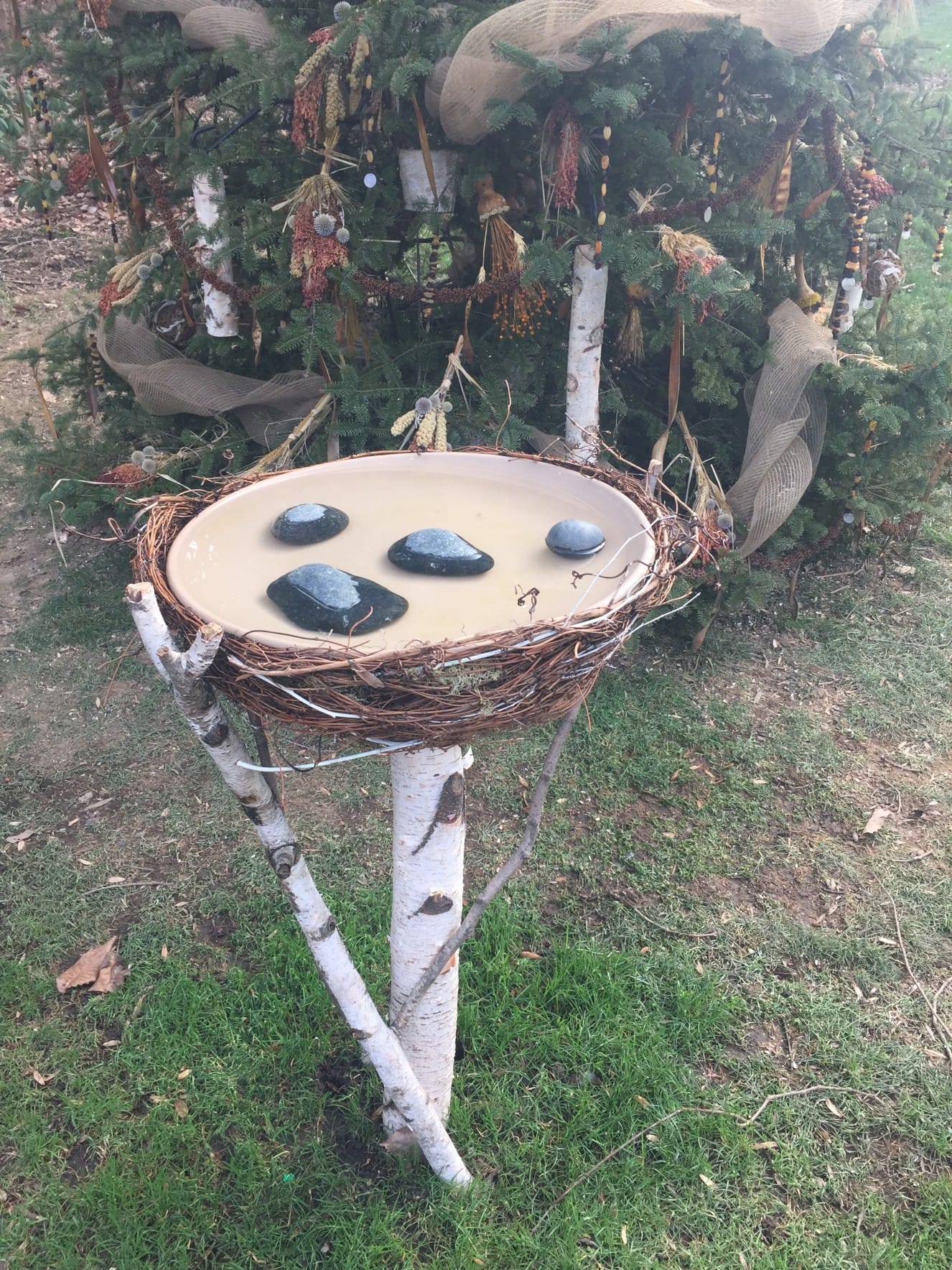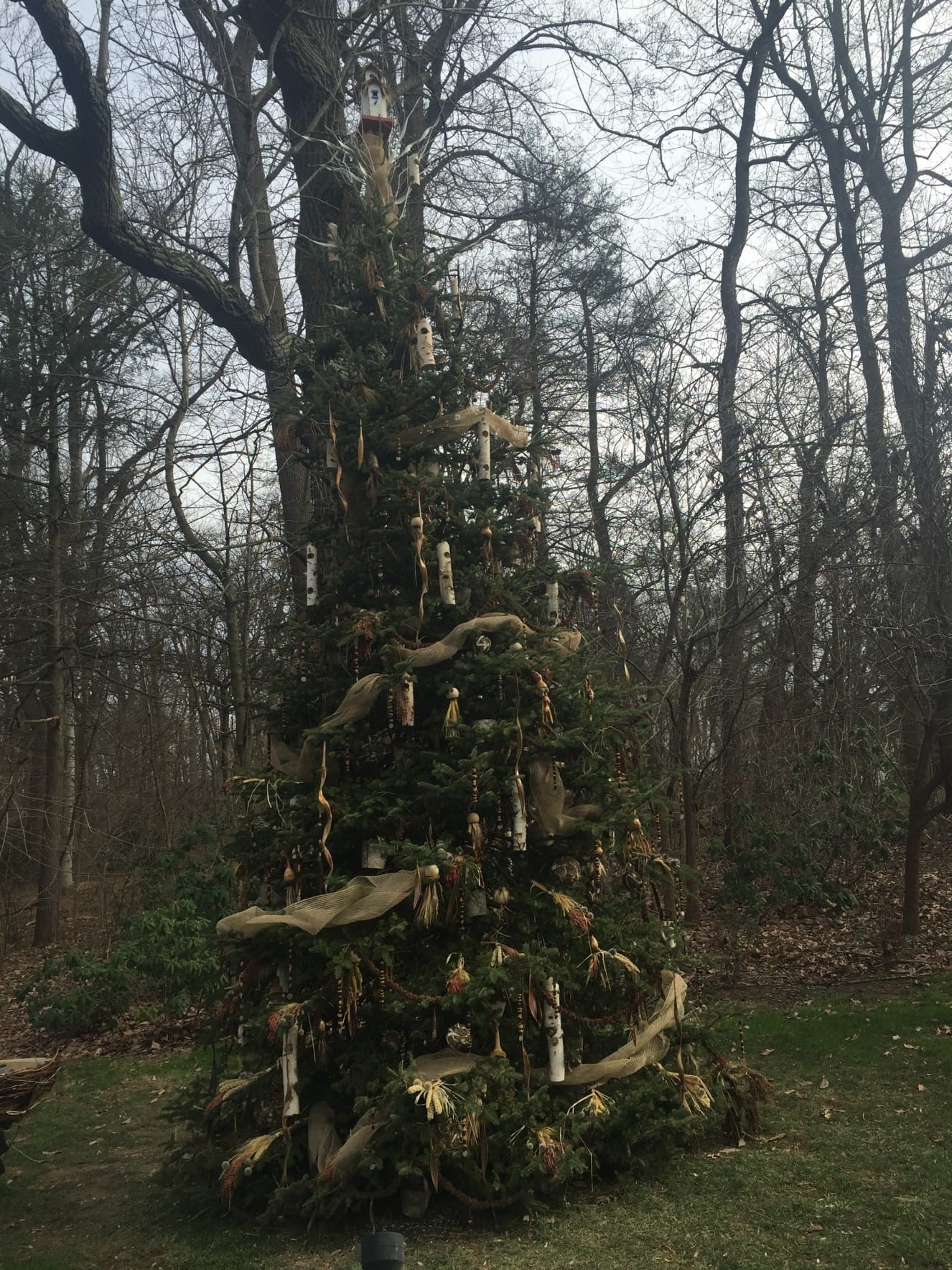 This tree by the lake was decorated by the staff. It’s ornaments are made from items found on the property!