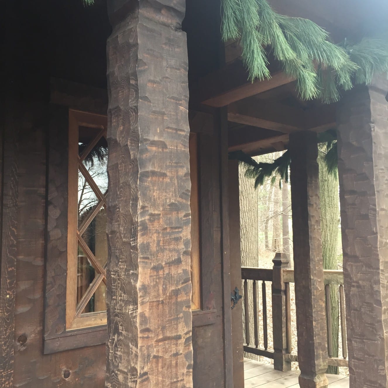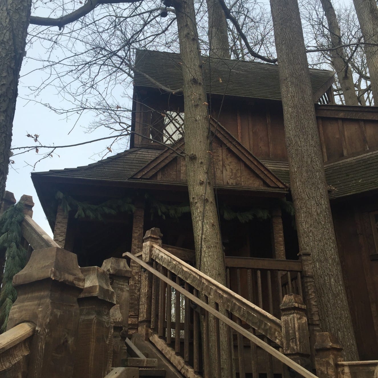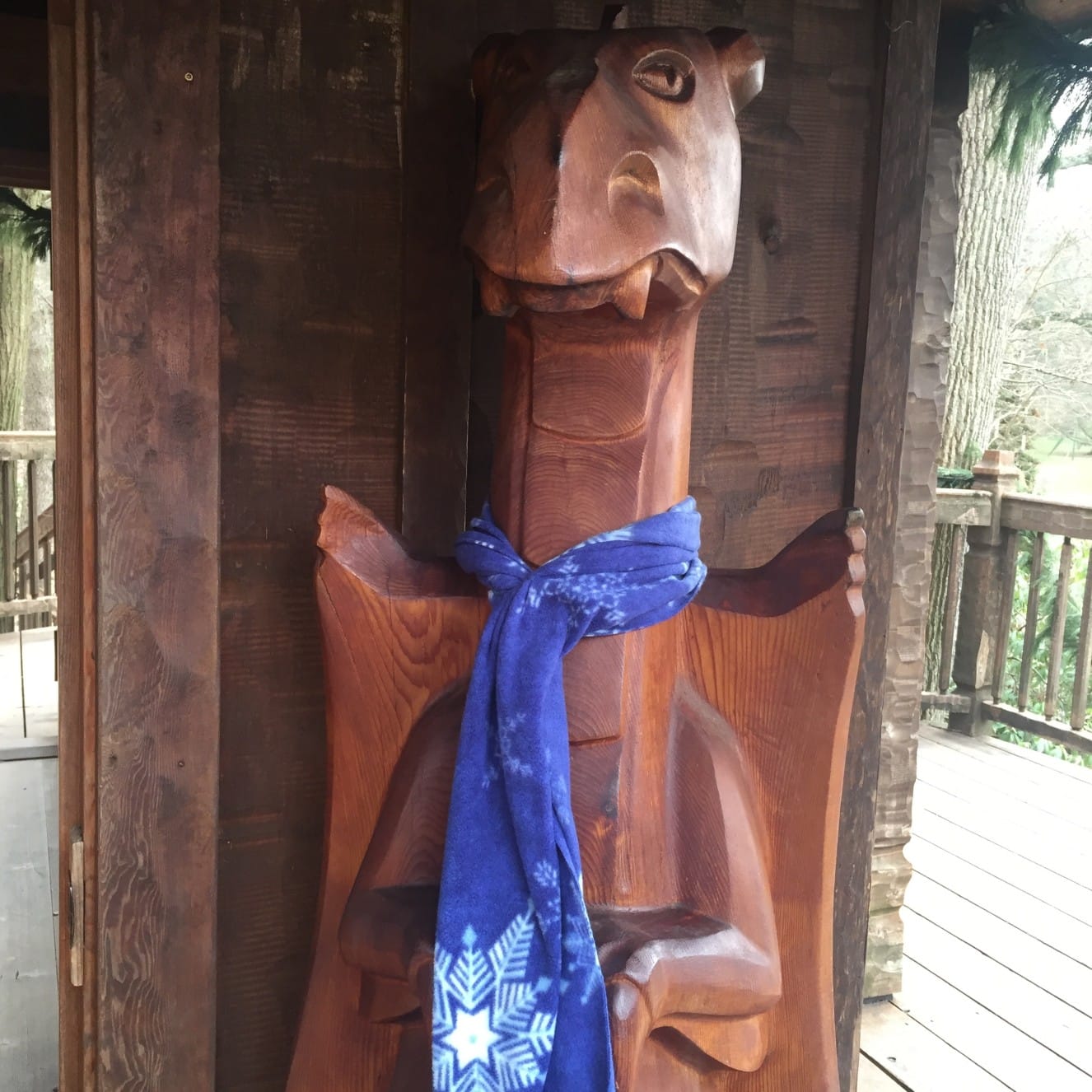 This tree by the lake was decorated by the staff. It’s ornaments are made from items found on the property!