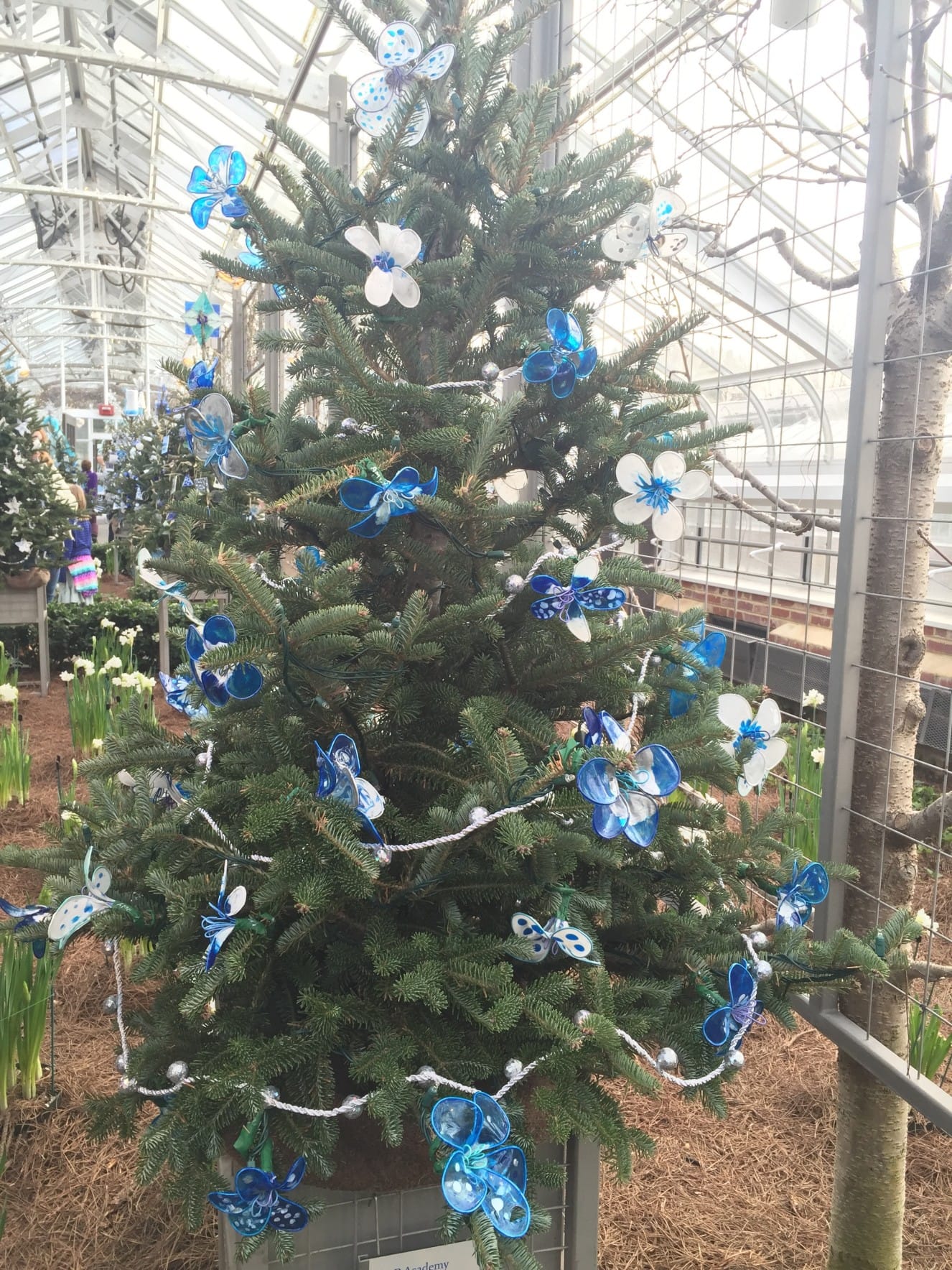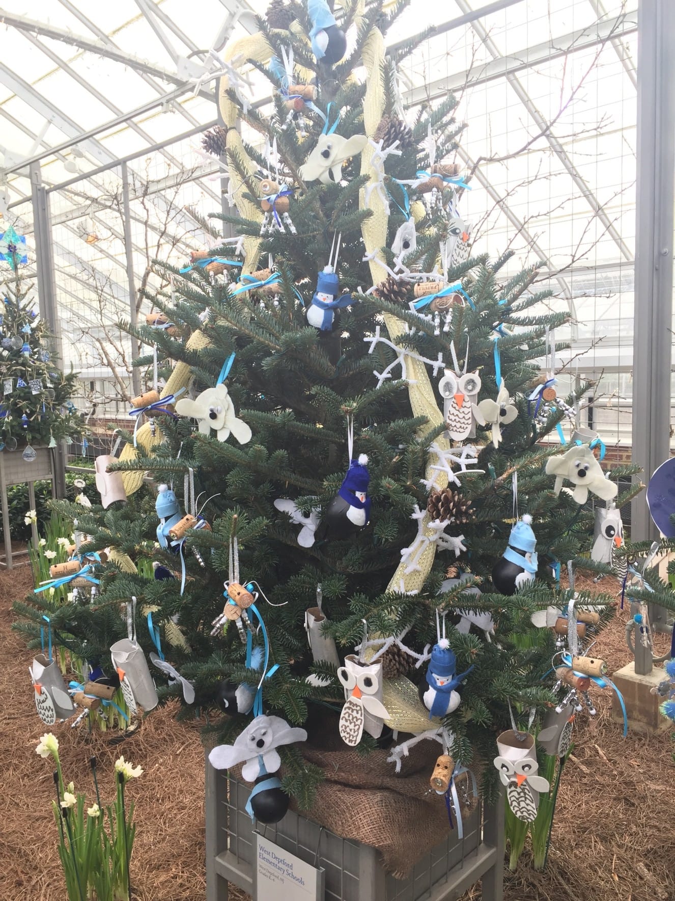 Different grades from schools in the area were able to decorate a room full of trees using a blue and white theme! They were really adorable!! Here are all the trees I saw, and a couple close ups of handmade ornaments too!