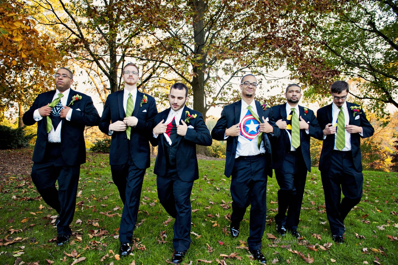 I don’t even know where to start.. so amazing.. the amount of thought you put into every little detail.. you look gorgeous.. the cake is adorable.. love the super hero touch for the men.. absolutely amazing..