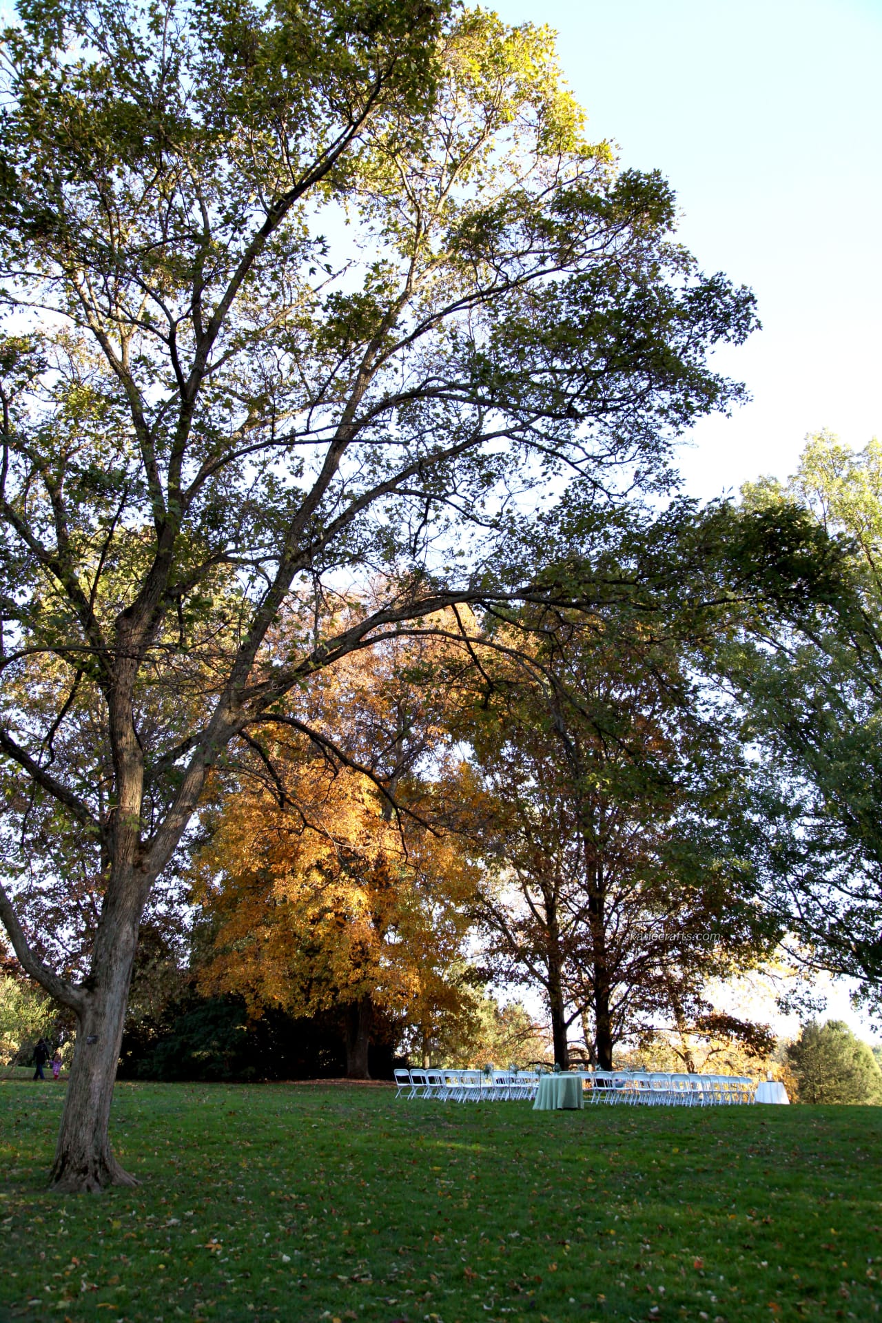 Our wedding took place at Morris Arboretum in Philadelphia, PA. Our wedding colors were brown and green with a splash of purple. Sometimes sage, sometimes kelly green. Sometimes mocha brown, sometimes chocolate. Sometimes plum, sometimes lavender. We used all different hues.