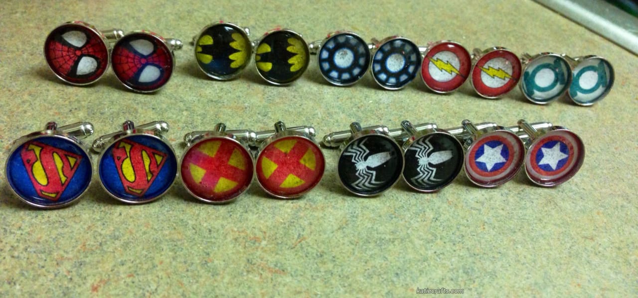 Bridesmaids and Groomsmen enjoyed a plethora of handmade gifts, including different superhero cufflinks to match their different superhero t-shirts and different superhero wallets, after ceremony flip flops, necklaces, hair combs and more.