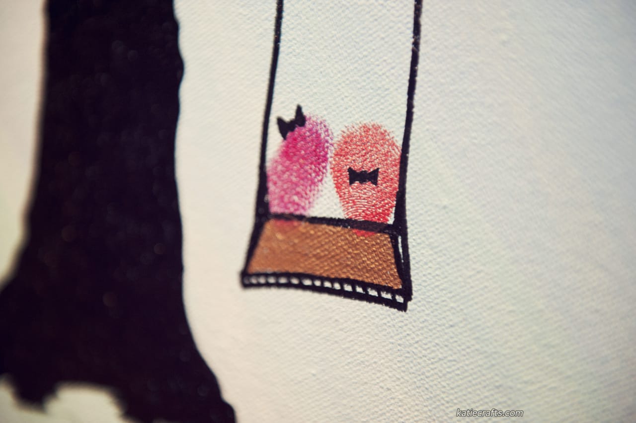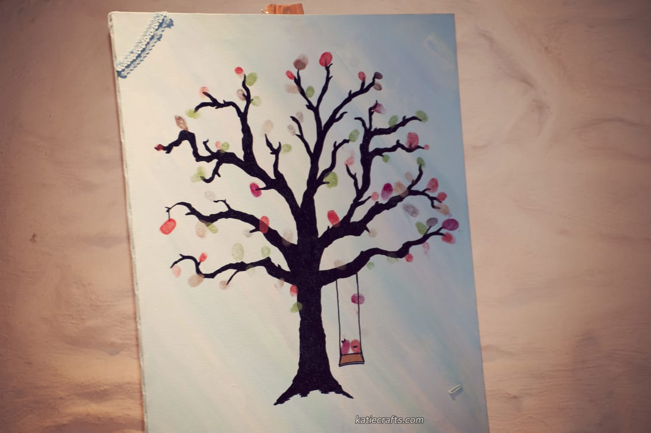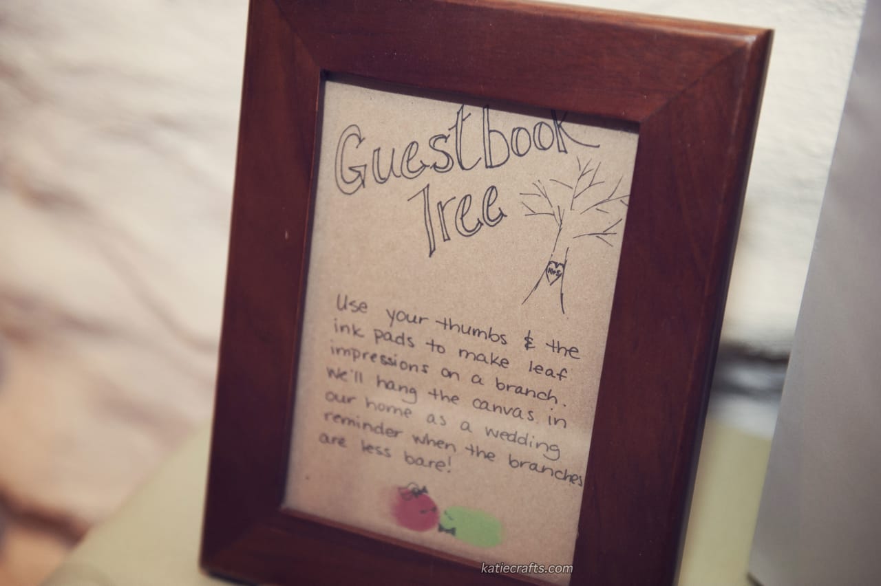 The guest book was a canvas, where we painted a tree. Guests were to ink up their thumbs and leave a leaf as their signature.