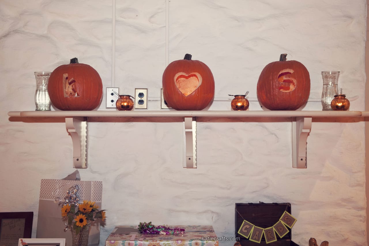 There are a billion things I made that I’m not even thinking of right now, I’m sure. I wanted to record all the blood, sweat and tears that went in to each project I took on in written form, but I knew I couldn’t juggle finishing everything for the wedding AND a fledgling blog simultaneously, but it’s the reason Katie Crafts began just a few months later. I needed a creative outlet with wedding planning over! Now with my two year anniversary coming up, it’s time to share photos of all my labors of love. Hopefully you future Fall brides will get an idea or two, and I’m happy to help in any way! If you see a DIY you love, let me know and I’ll try to get a full post up on it! For now, enjoy some of my wedding pics and pin what you like!