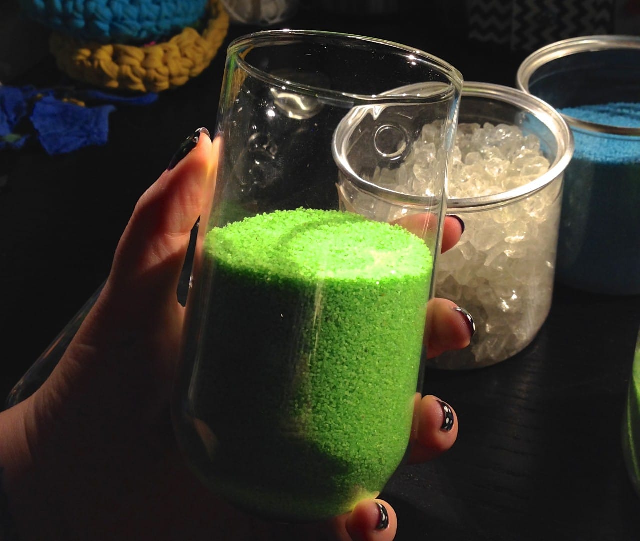We picked up two Wall Tubes to mount on the wall above my new crafting table, and all the makings for new living wall art right from the Chive booth. As soon as I got home, I put them together.