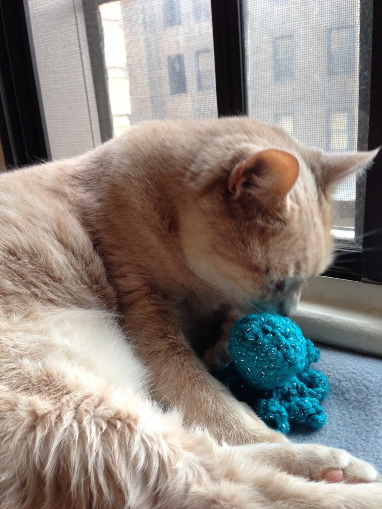 I love making these for my kitties (and friend’s kitties, and all kitties!) I stuff a little catnip inside and the furbabies love them. This pattern is mega easy, and can be adjusted to make larger toys for babies too -just maybe exclude the catnip. 😉