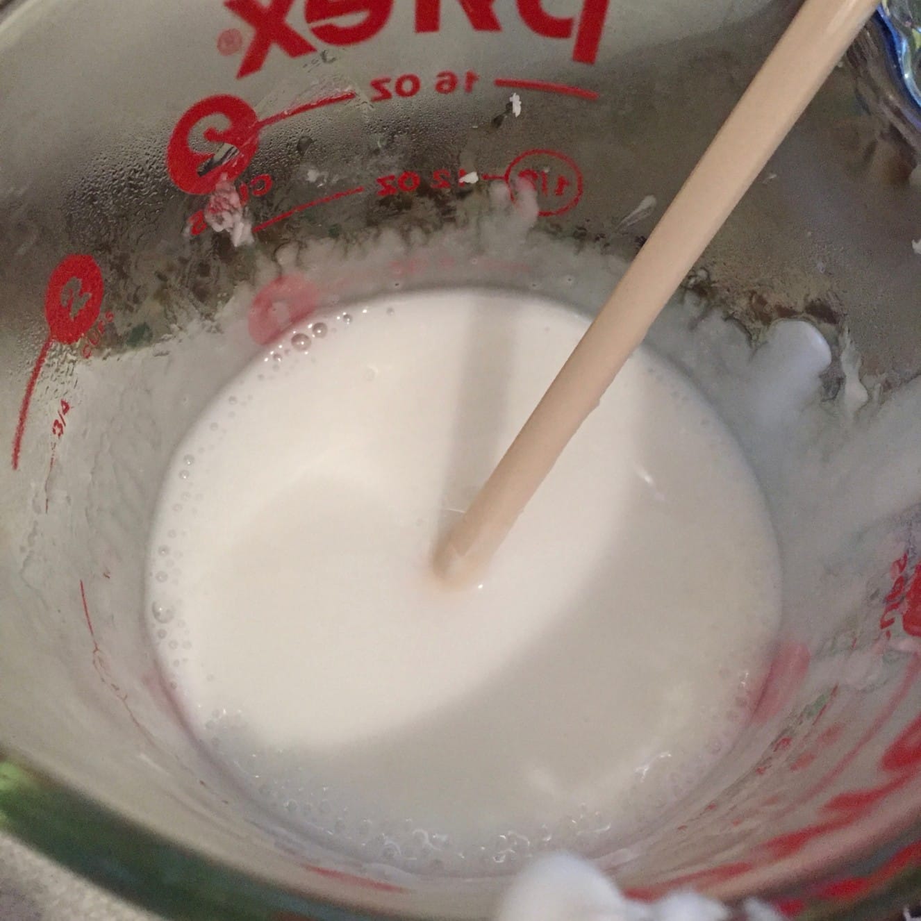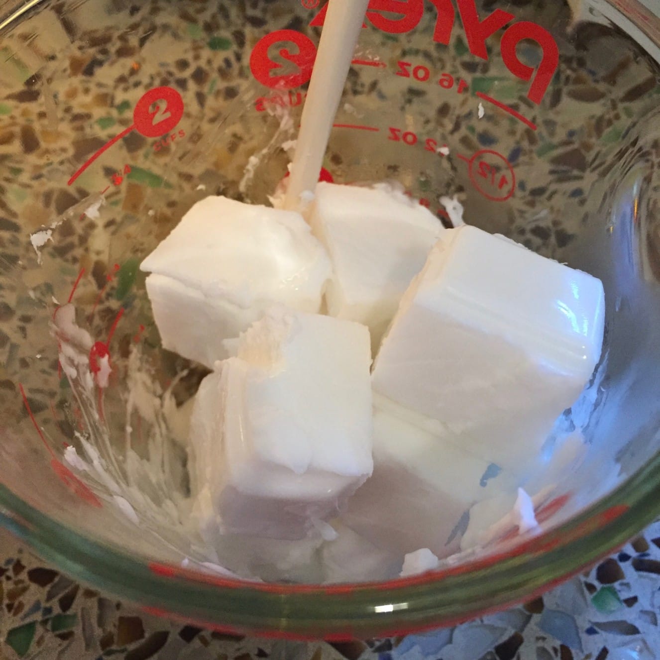 - Use a metal spatula or something similar to help you left the cubes out of the packaging and put them into the glass measuring cup. I accomplished this with a pie server!