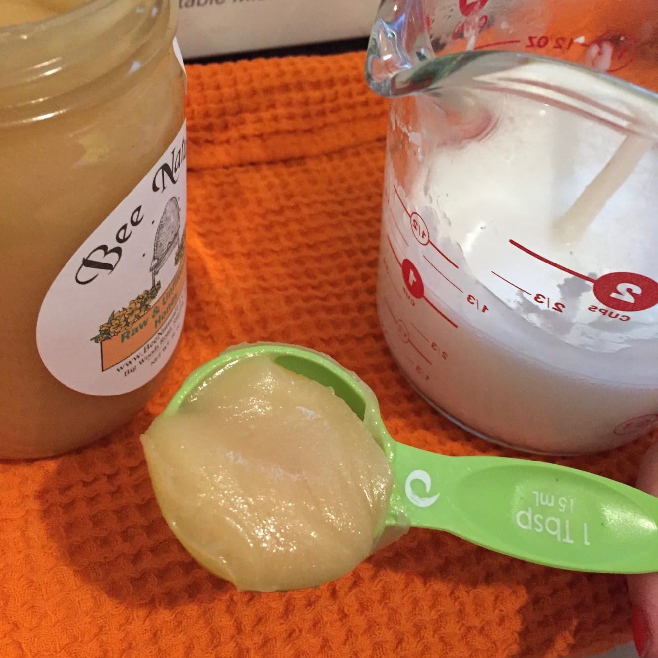 - While it’s still hot, add 2 Tablespoons of Raw Unfiltered Honey to the soap. Stir until completely mixed.