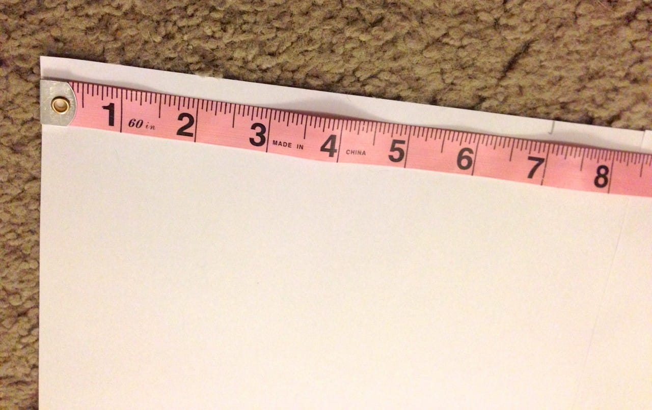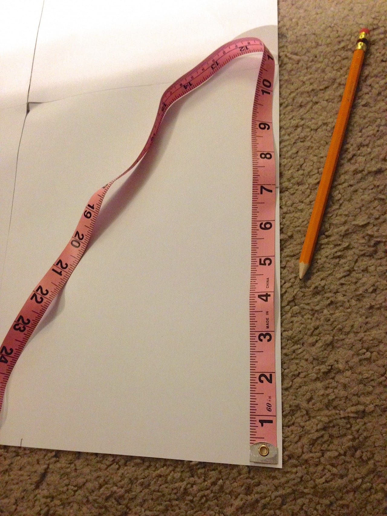 - Tape a whole bunch of papers together! You’ll be working from the corner, so it needs to be at least as long on each side as the length of your radius + the length of your skirt.