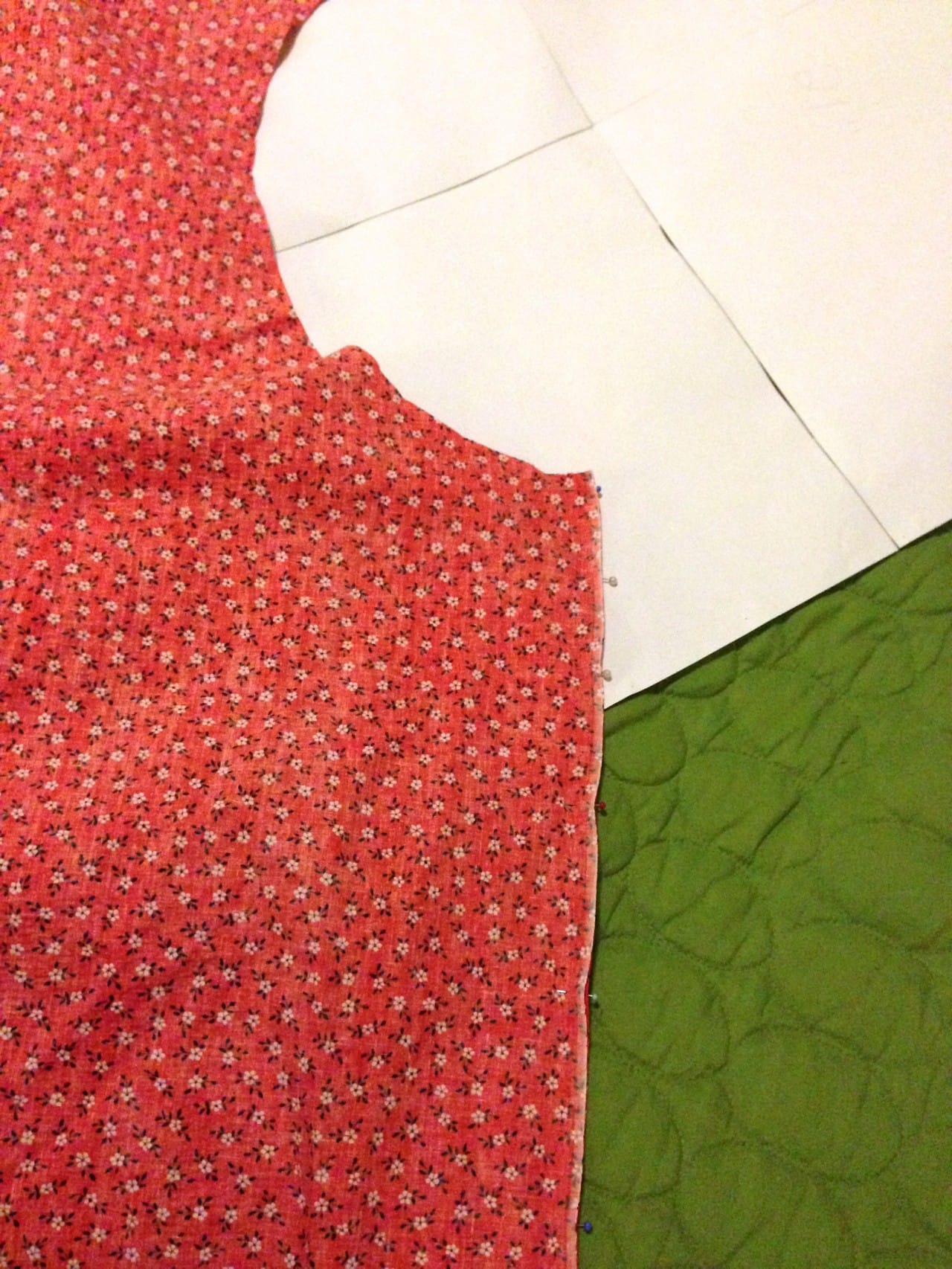- Measuring tape, sewing machine, tape, paper, matching thread, scissors, iron (optional), pinking shears (optional), pencil/chalk, tons of pins