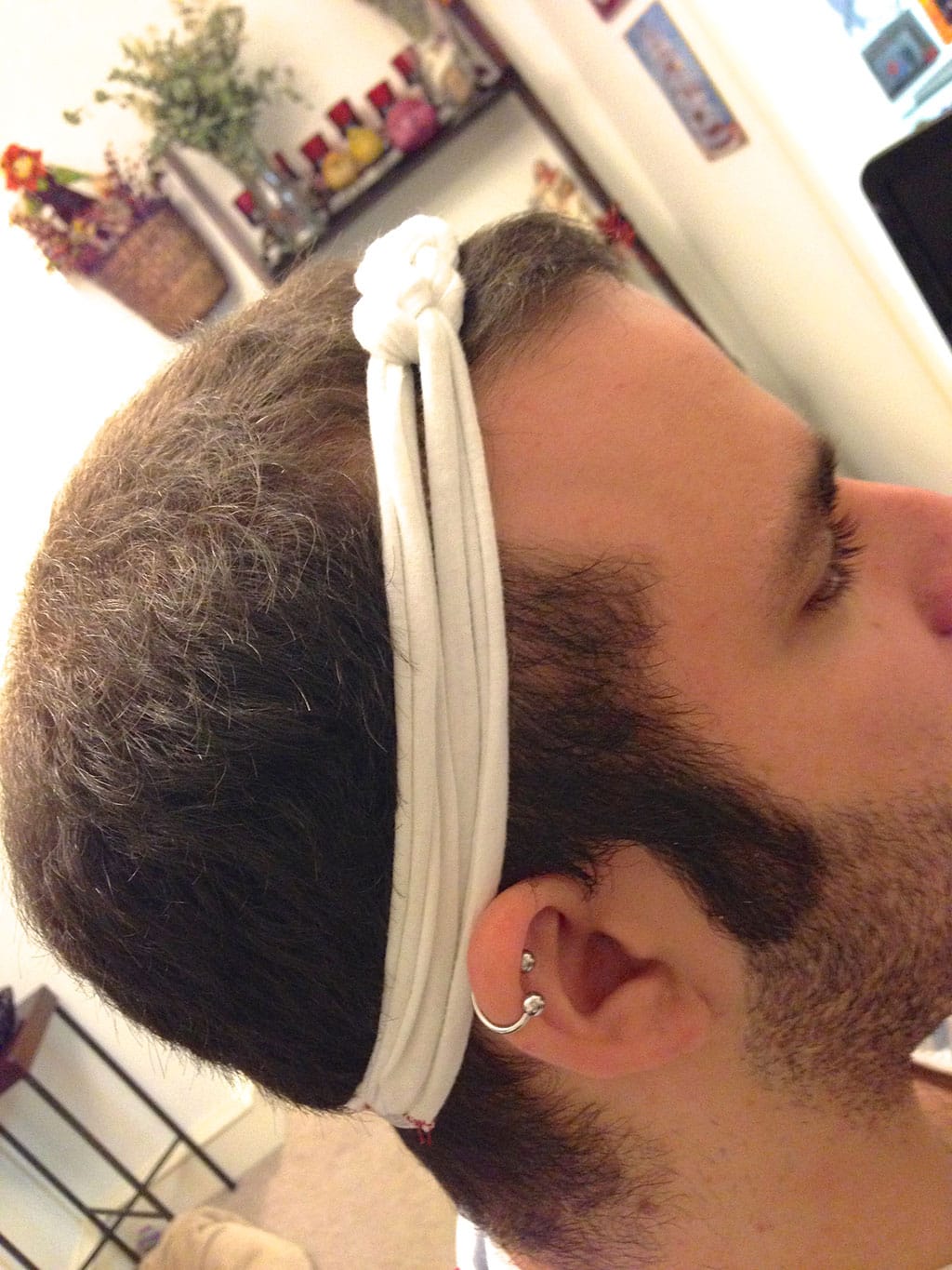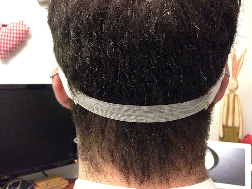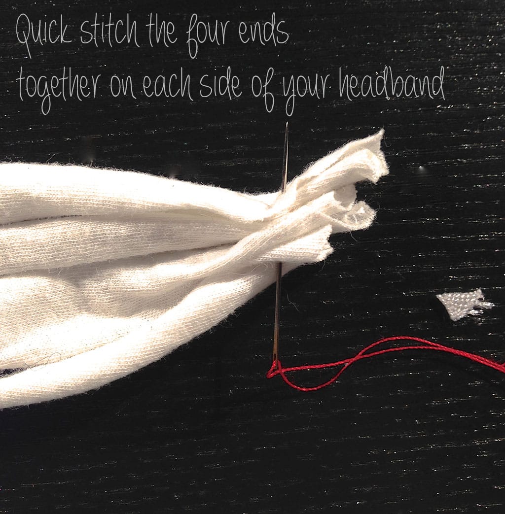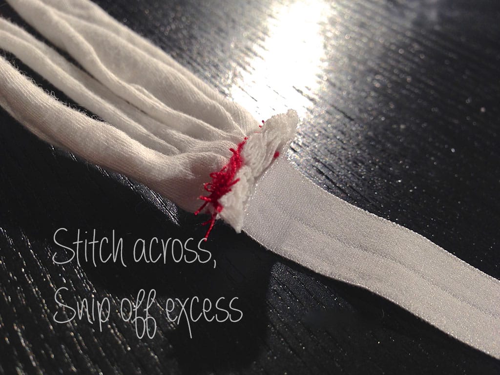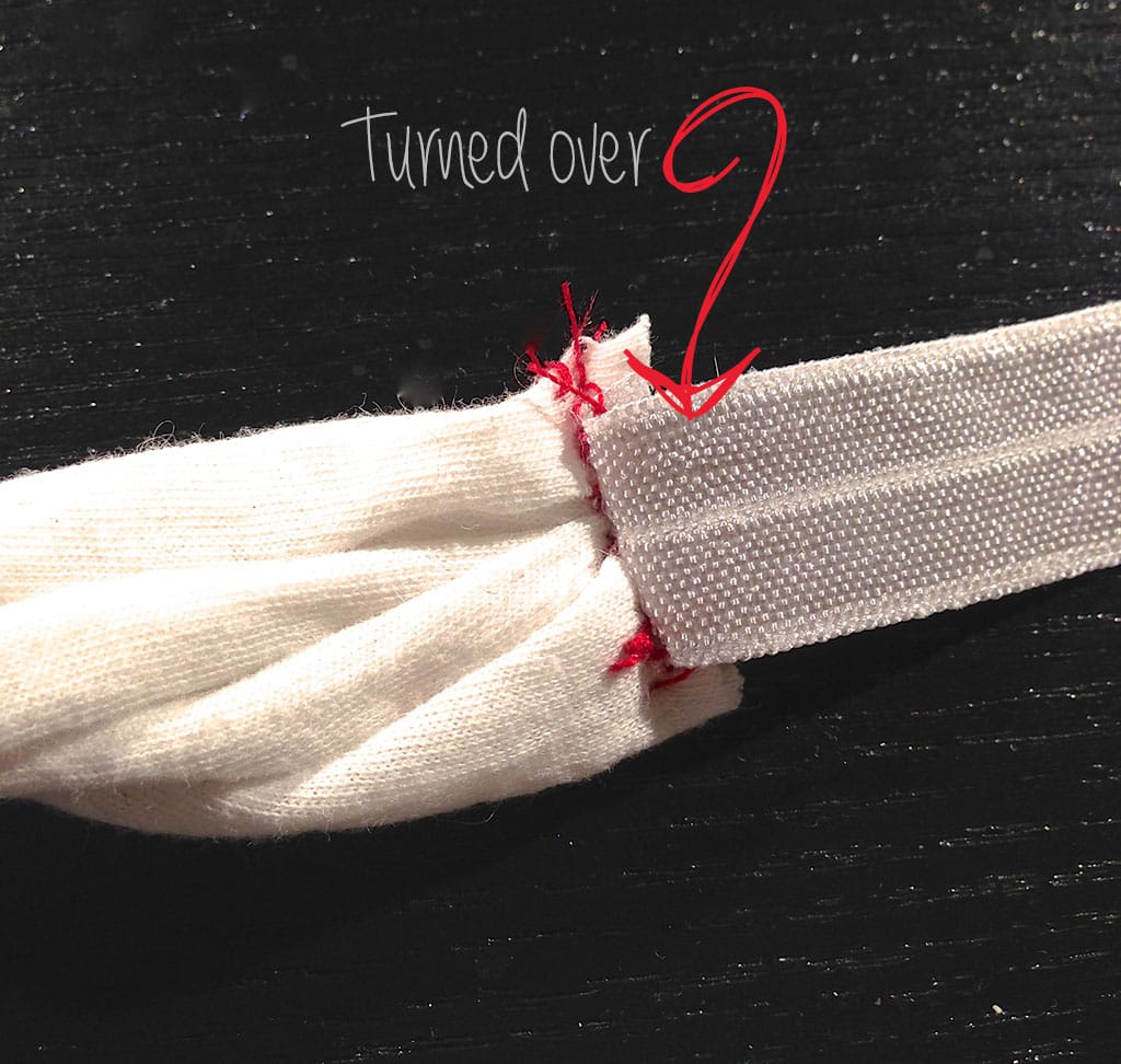 - Place unfinished headband around head and see if the elastic will be tight enough. If not, snip a little off before sewing it to the other side.