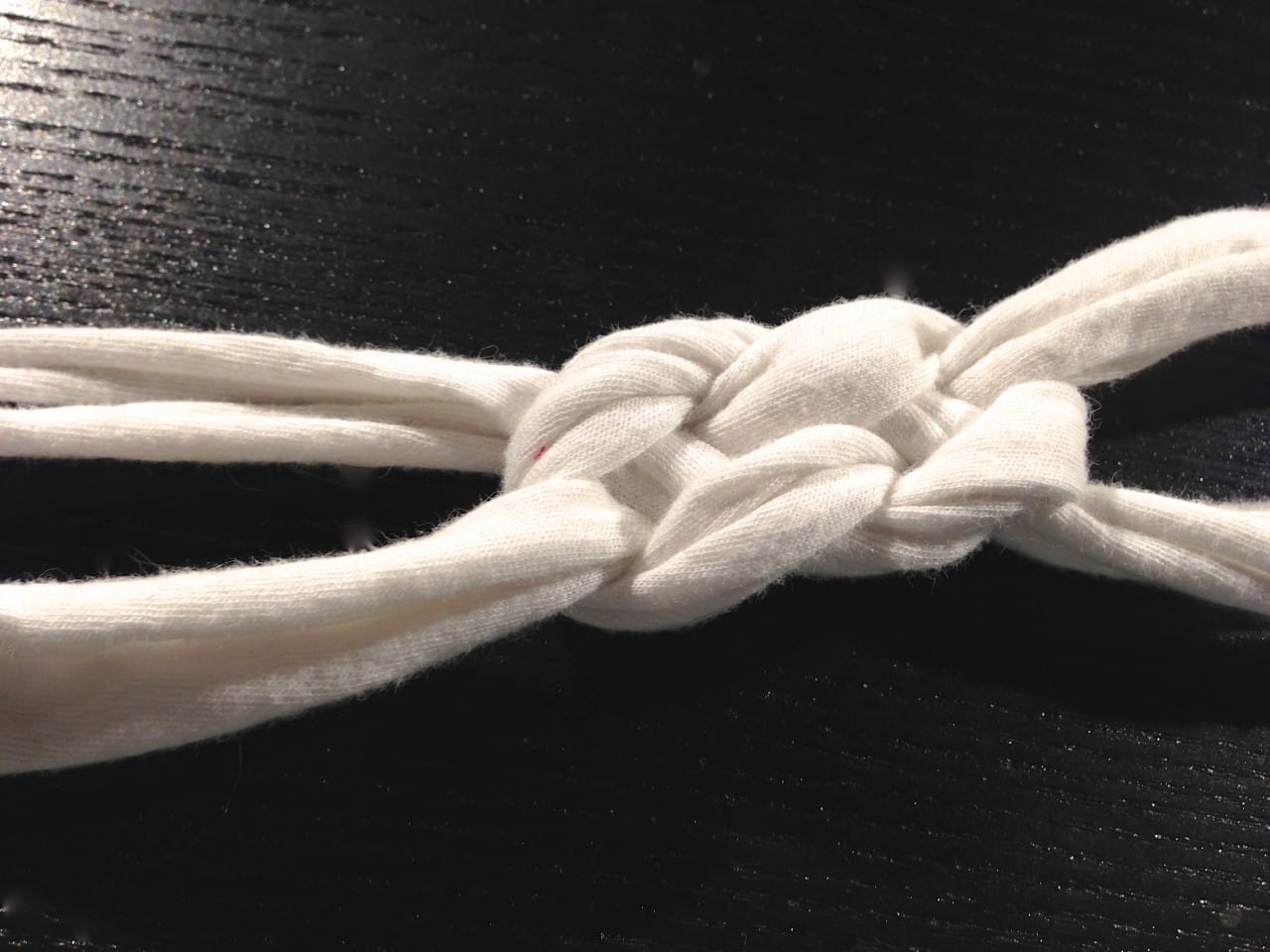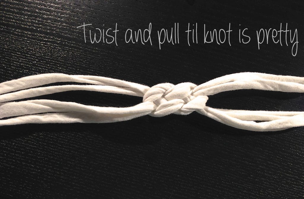 - Next you’ll pull the ends to tighten the knot. Use your fingers to manipulate the yarn and make it pretty!