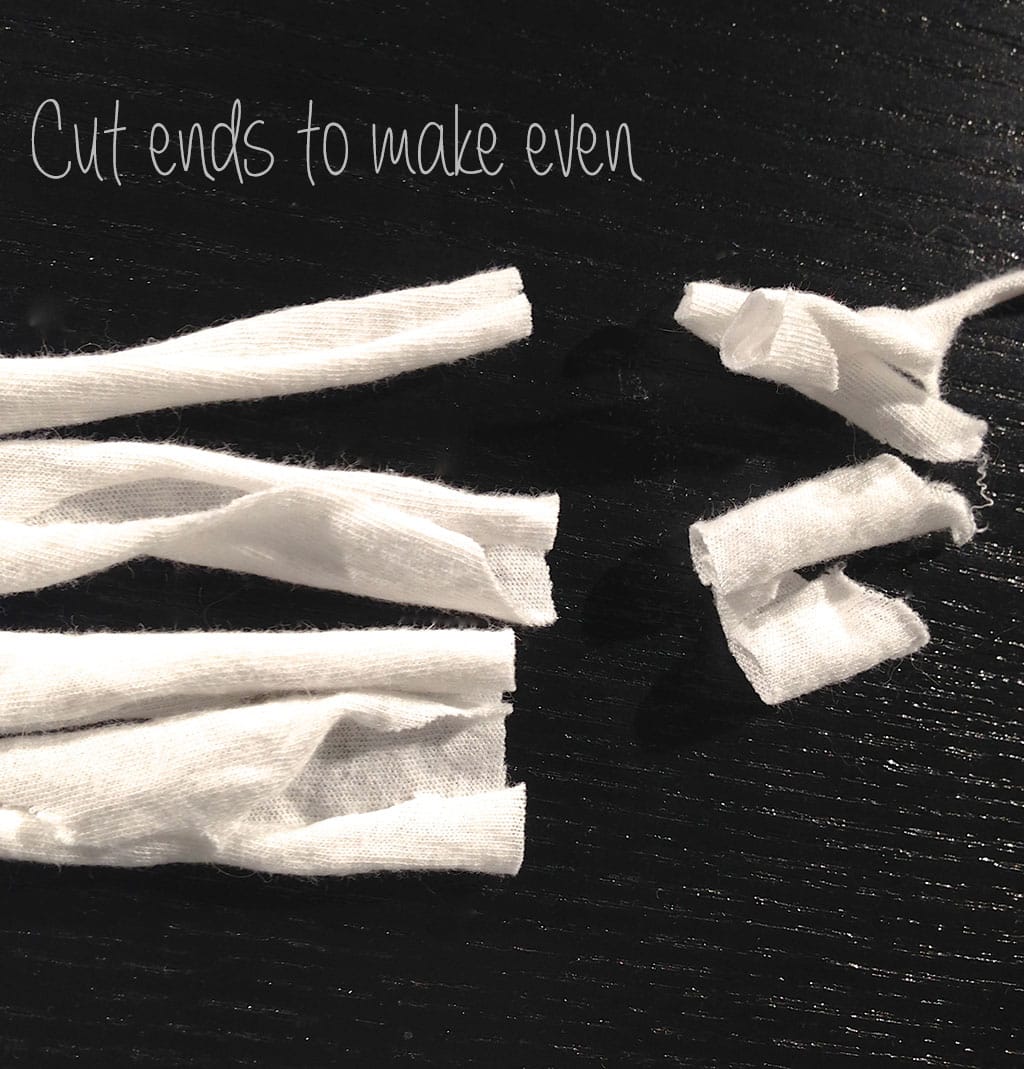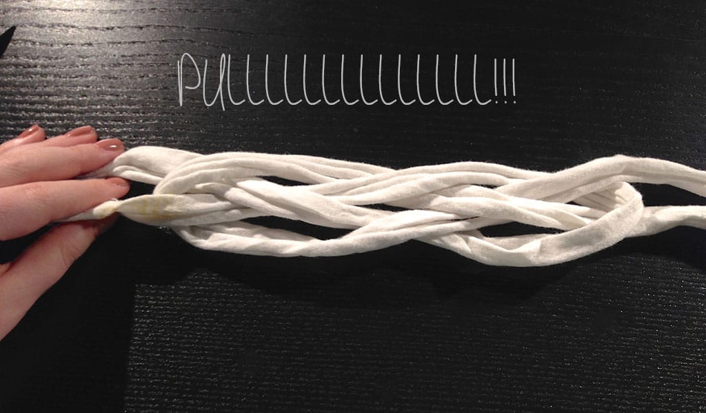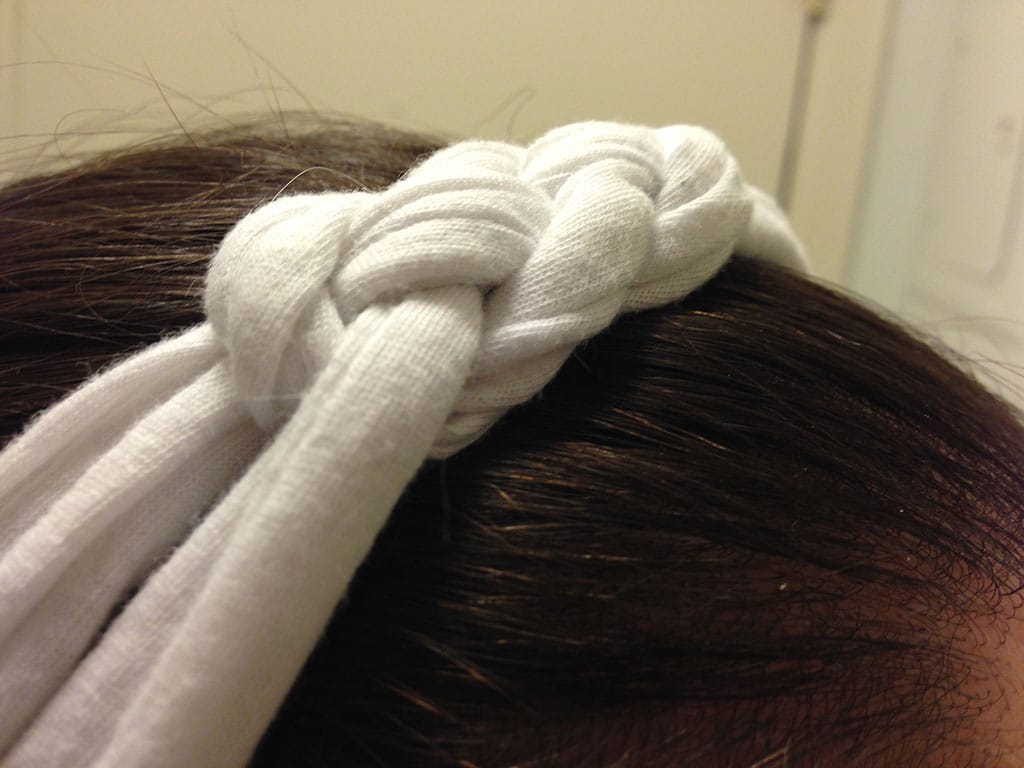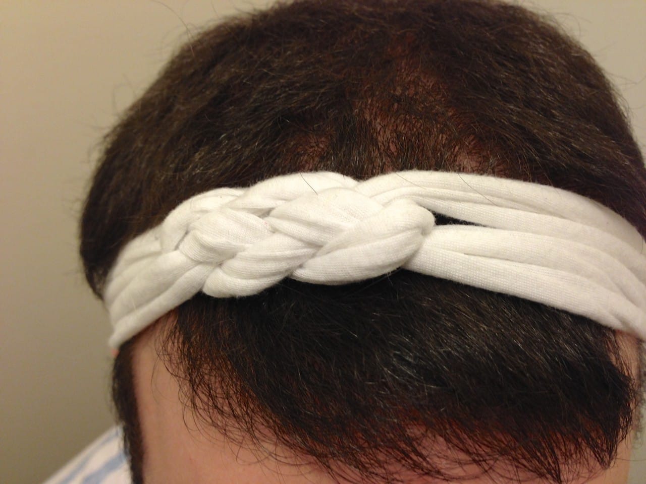 - 4 strips of t-shirt yarn (enough to wrap around your head)