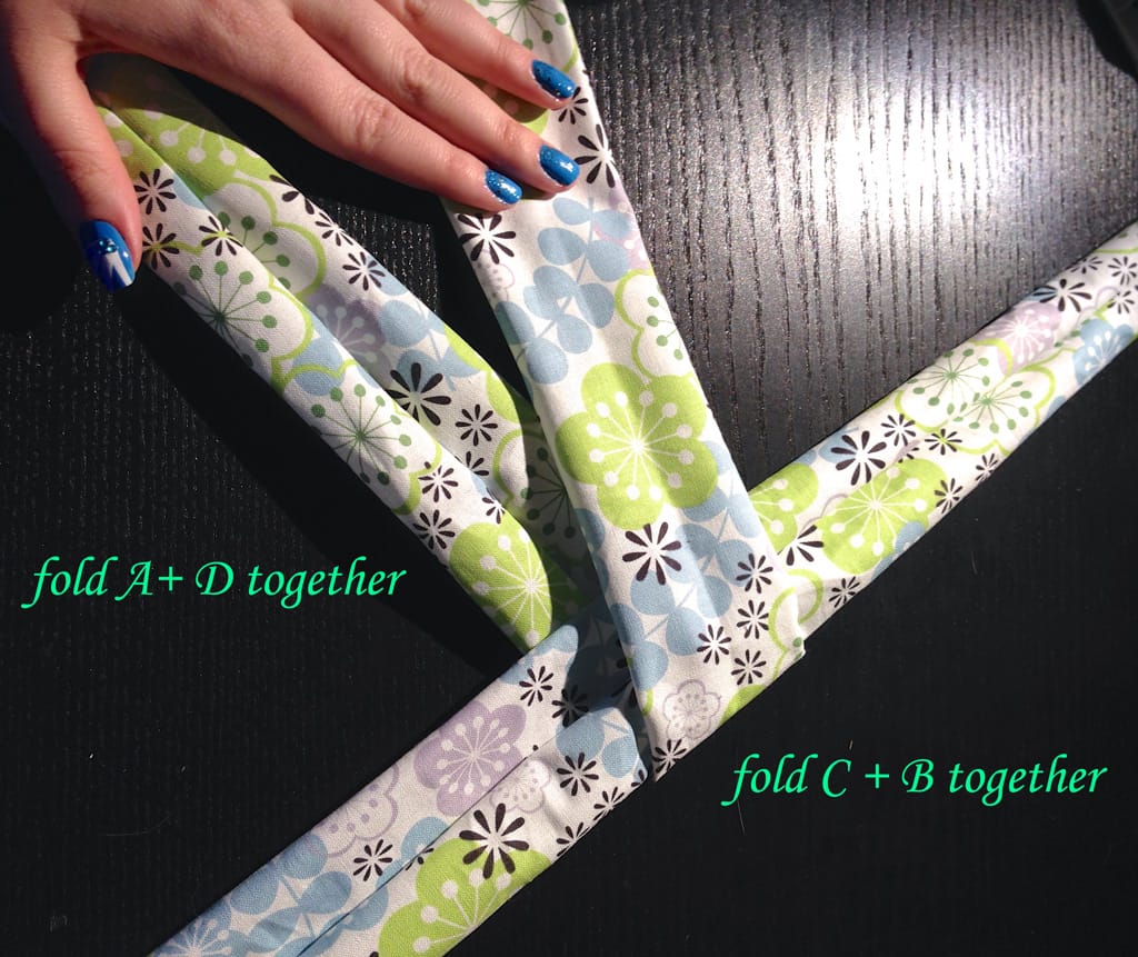 - Fold point “D” to point “A” and point “C” to point “B” like in the photo below.
