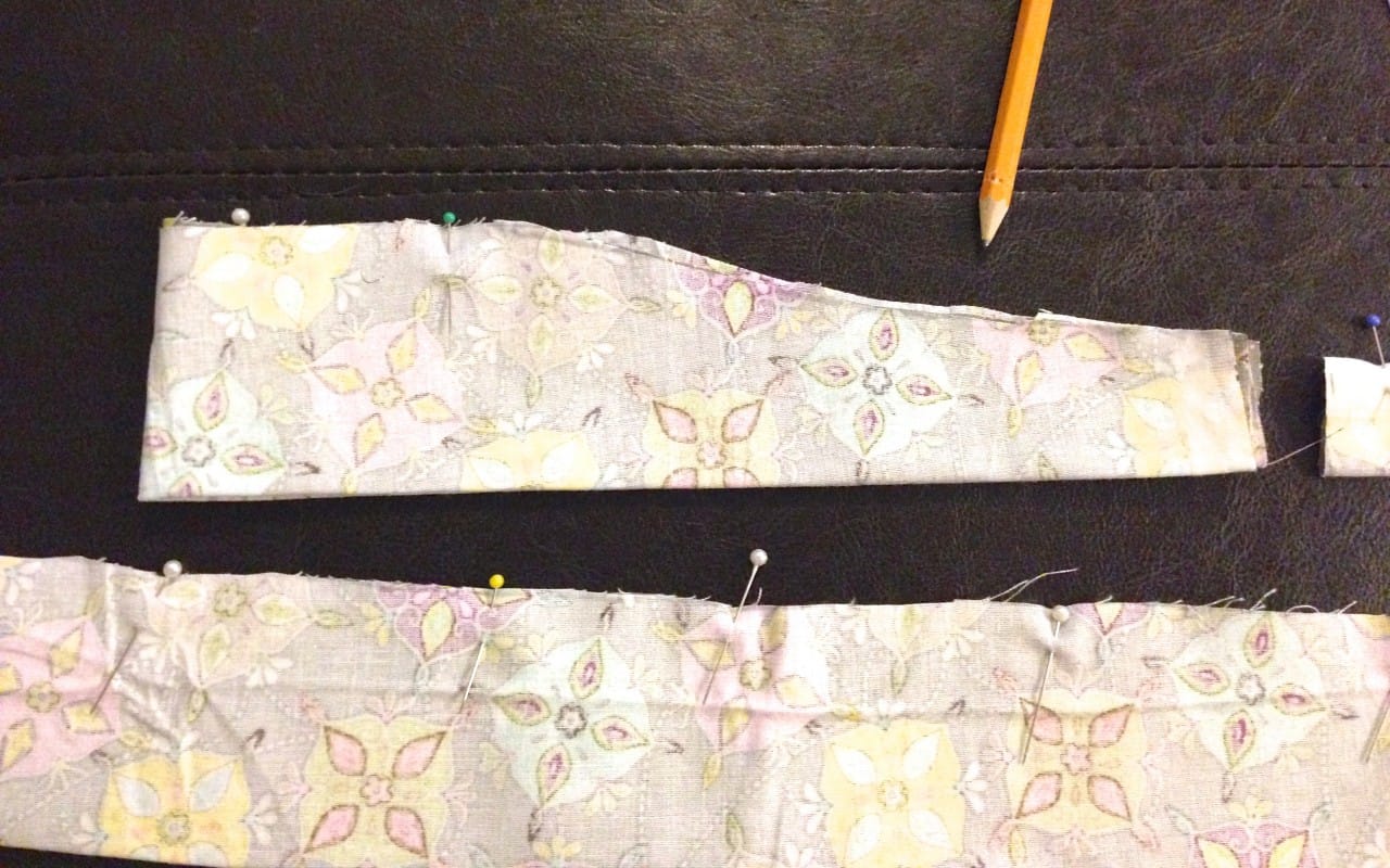 - Re-pin, and use the newly cut tapered piece as a pattern guide for the second piece! Trace it on and cut it out. Re-pin.