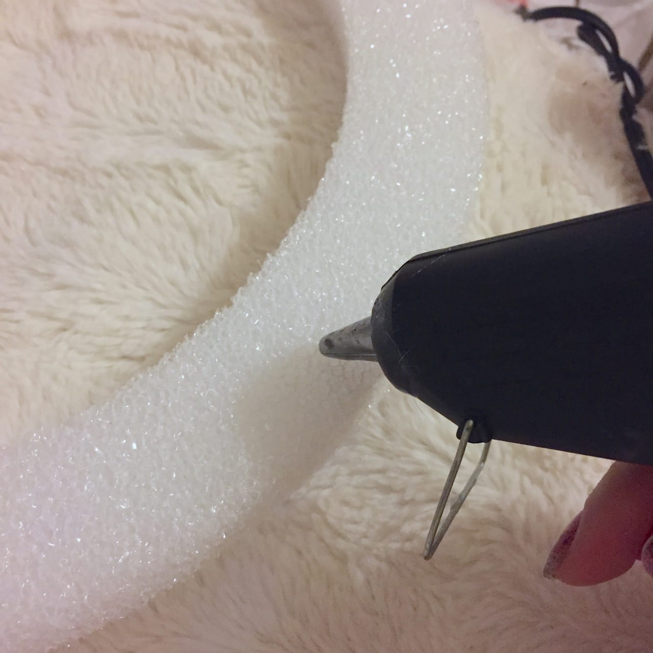 - Continue until entire wreath is filled up. Set aside and turn off glue gun for now.