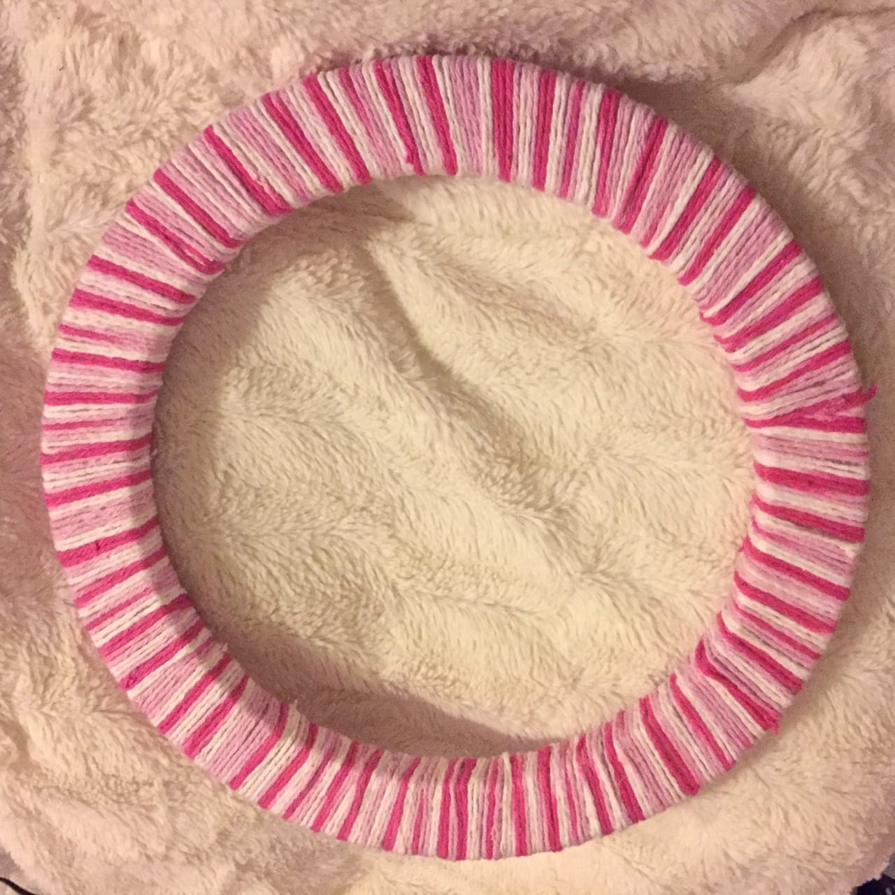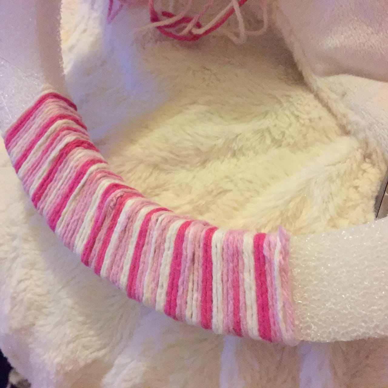 - Wrap yarn around a few times and glue again as you go, continuing until your piece of yarn is finished. Press down as you go.