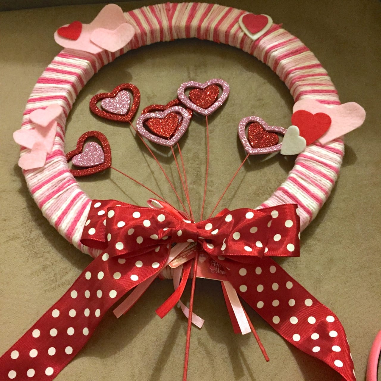 - Turn your glue gun back on and glue down the bow, hearts, and anything else that needs gluing.