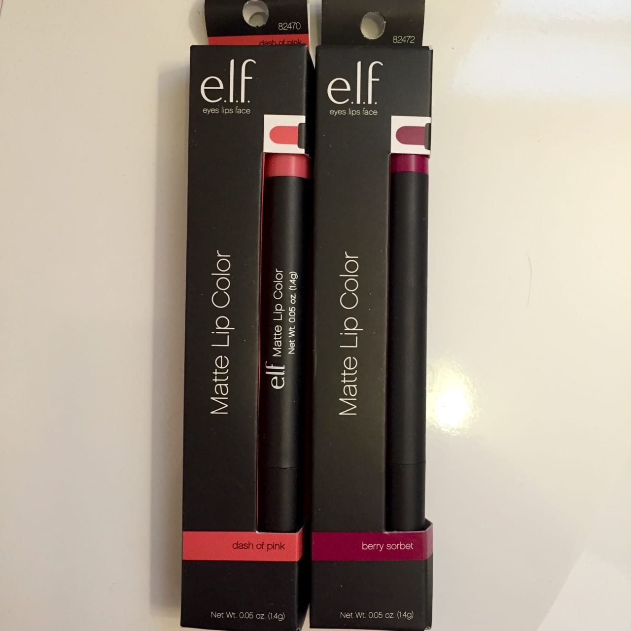 I also added two new matte lip colors to my collection: Dash of Pink and Berry Sorbet. The matte lipsticks from e.l.f. are great because they last forever- through eating, drinking and hours of chatting! Berry Sorbet is a pretty fuschia type color while Dash of Pink is nice, light and great for the warm weather. I don’t like Nearly Nude very much, as it’s just TOO nude for me (and I feel like I look dead with it on!) I adore Rich Red, though! I usually line my lips with my regular red liner, fill the whole lip in with Rich Red and then do a quick coat of the above lipstick in Fearless for a long wearing bold look!