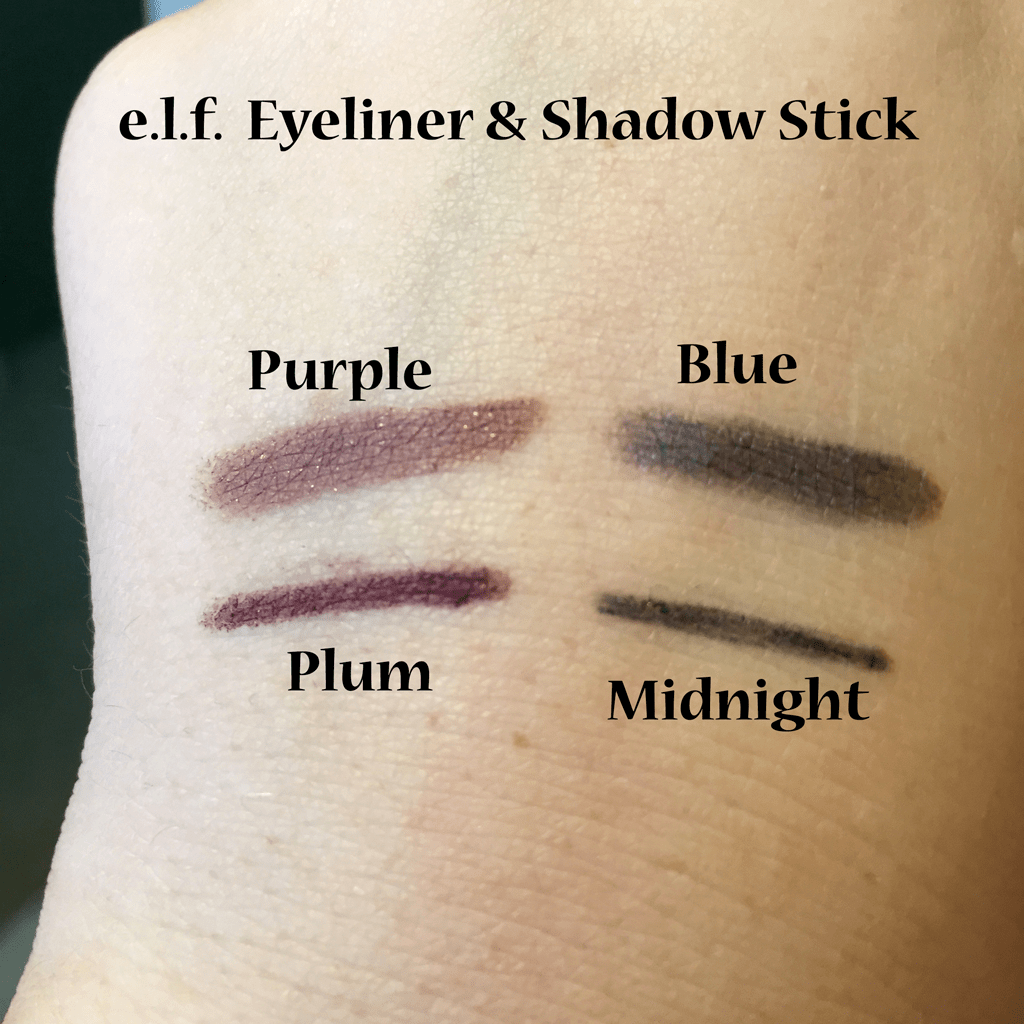I have two e.l.f. Eyeliner & Shadow Sticks, that I’m on the fence about. The colors are great (Purple Shadow with Plum Liner, and Blue Shadow with Midnight Liner) and I like the liners. The shadows glide on smoothly and blend just fine, but since they are creamy they tend to settle in the creases of my eyelids and then it just does not look nice! Even after primer and powder, it still creases. I’ll give them a few more tries before I nix them, though.