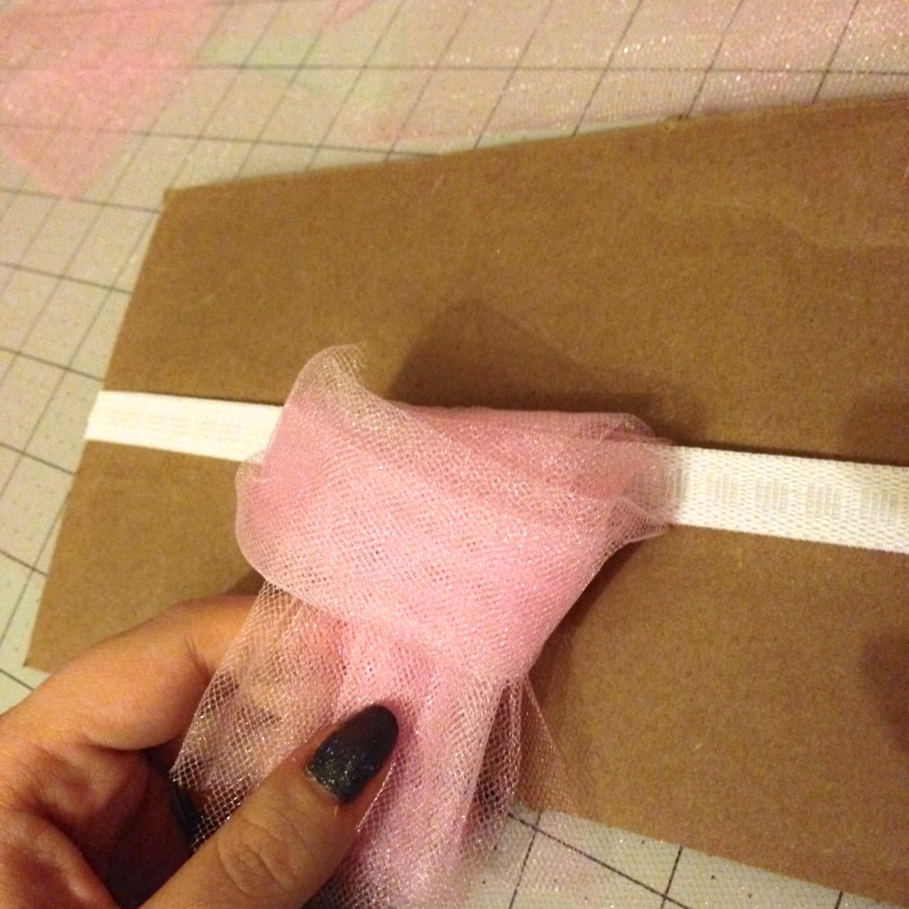 - Play around with the pieces, moving them around to see if you need more tulle. I ended up not needing any more once I got to that point. The existing ones just needed some moving around to fill the elastic.