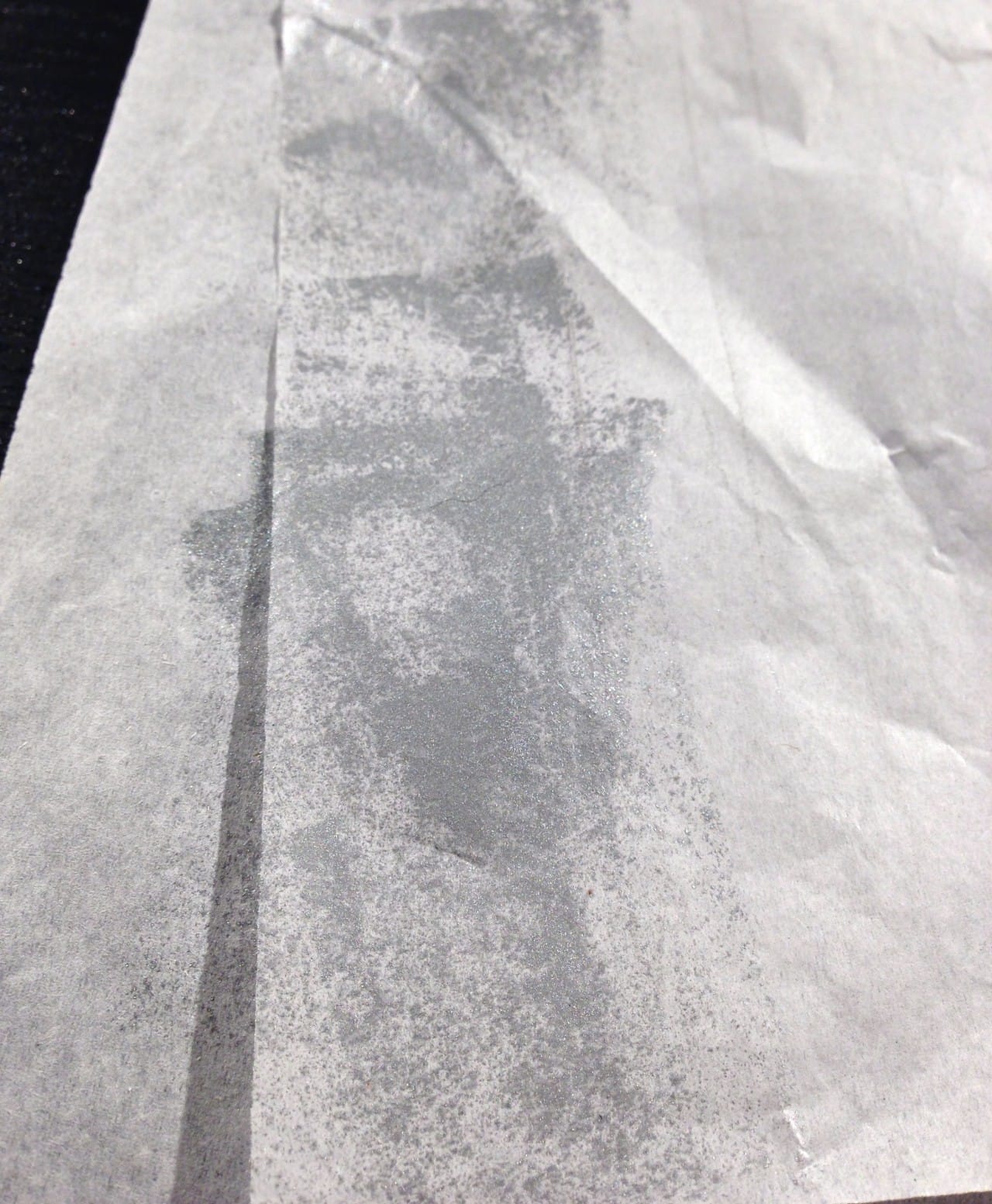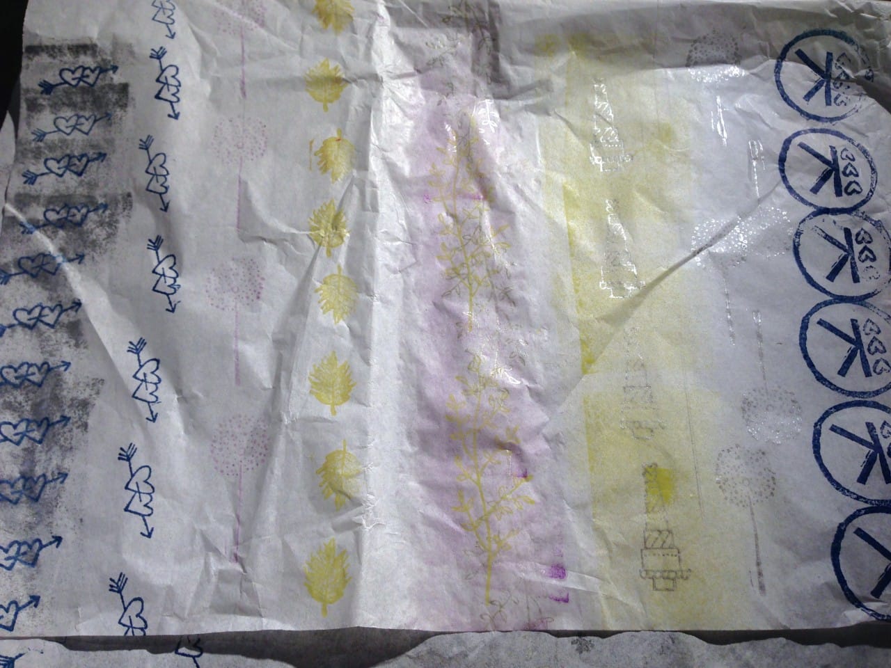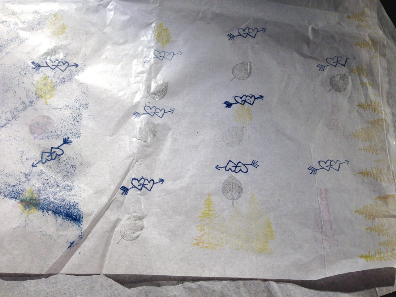 - When finished, place a sheet of wax paper as your backing across the whole of the tissue paper. Press firmly.
