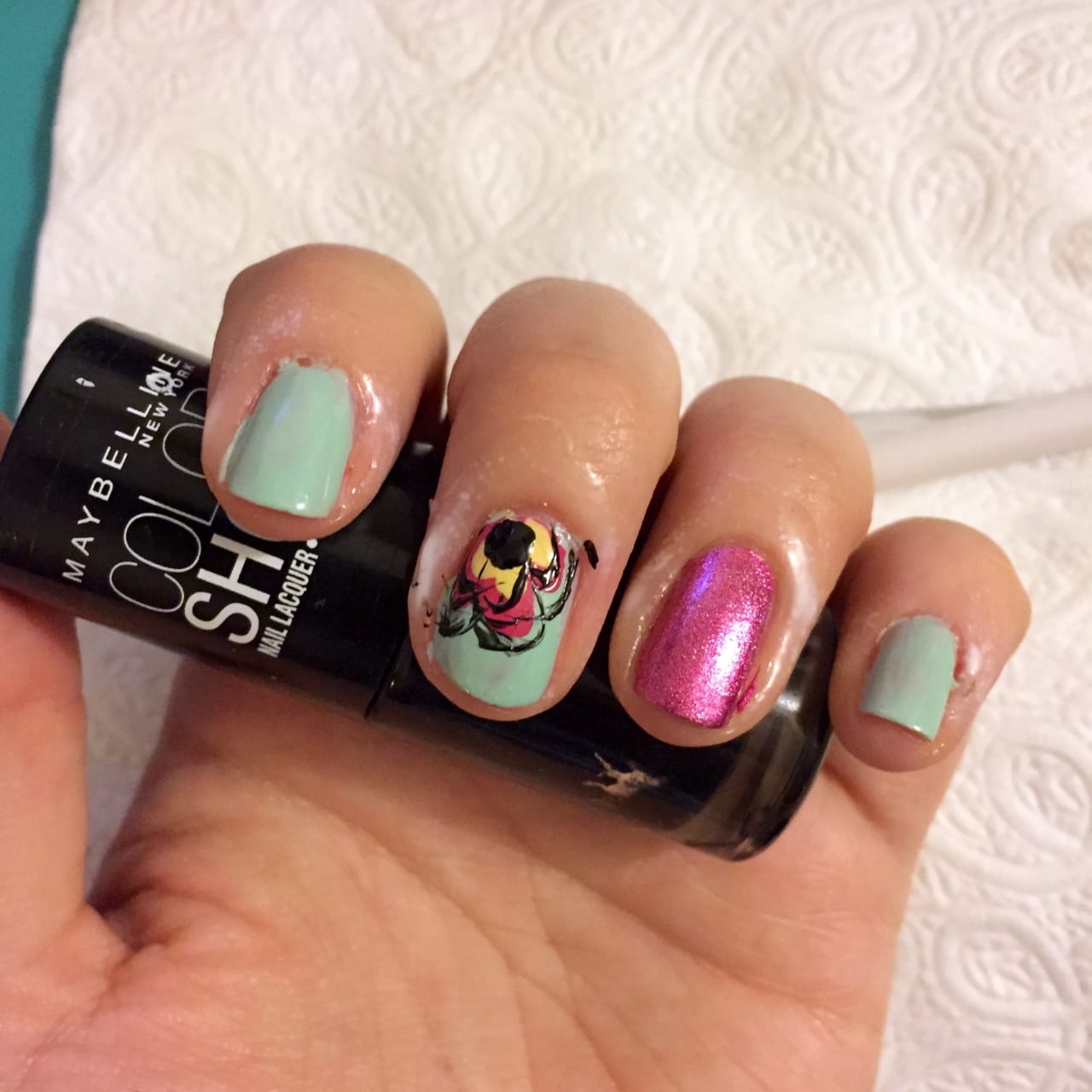 - Do a second coat of the pink and a second coat of the green on each of the nails.