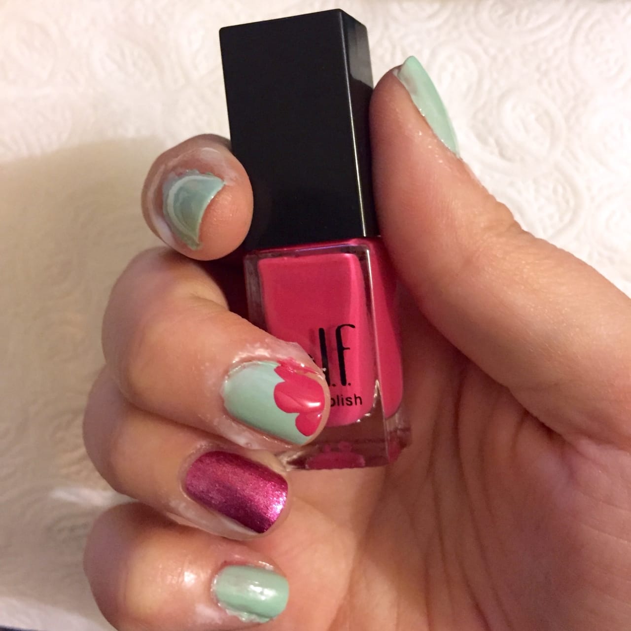 - Paint one coat of mint green polish on each of the remaining nails. Let dry.