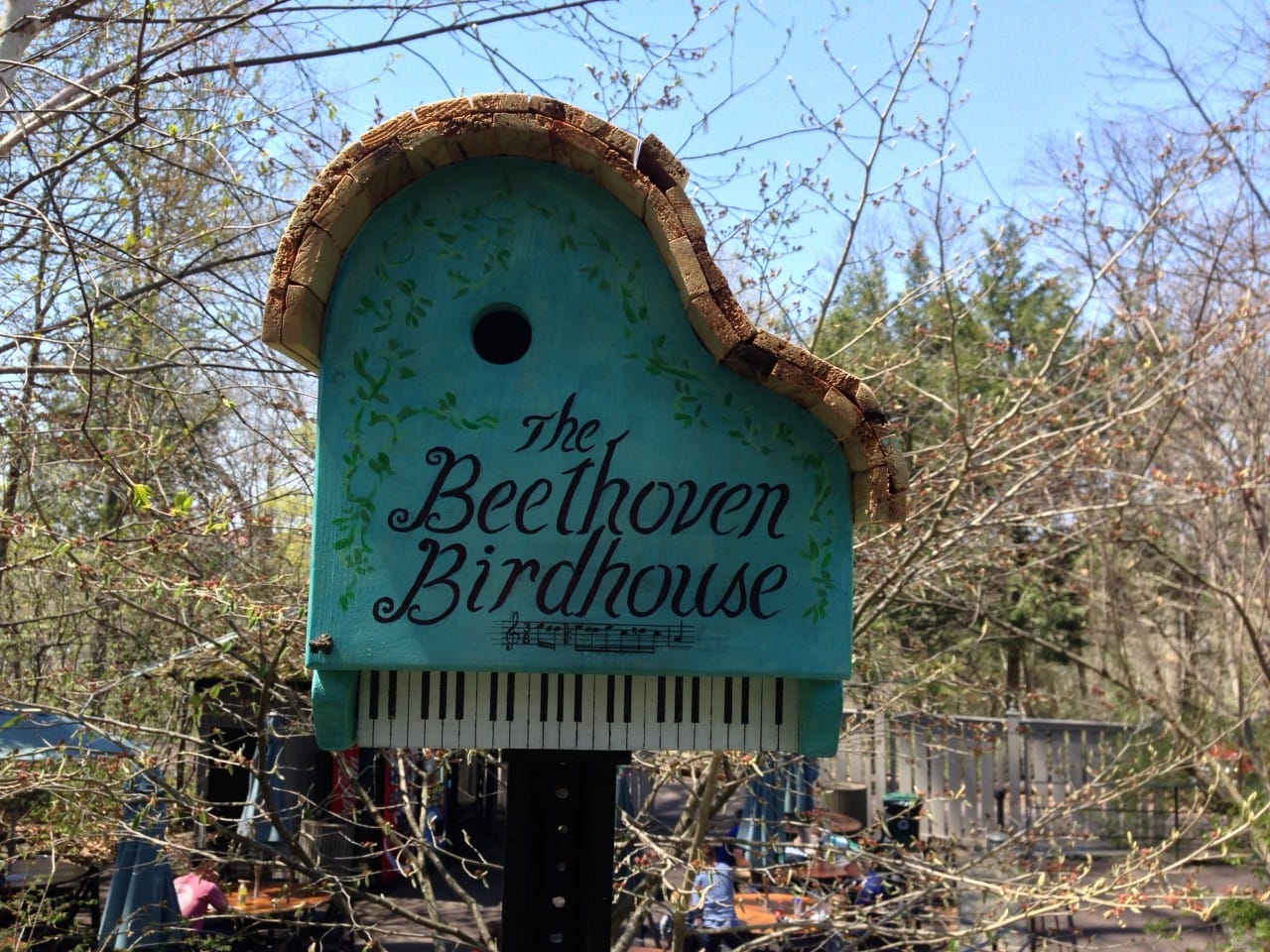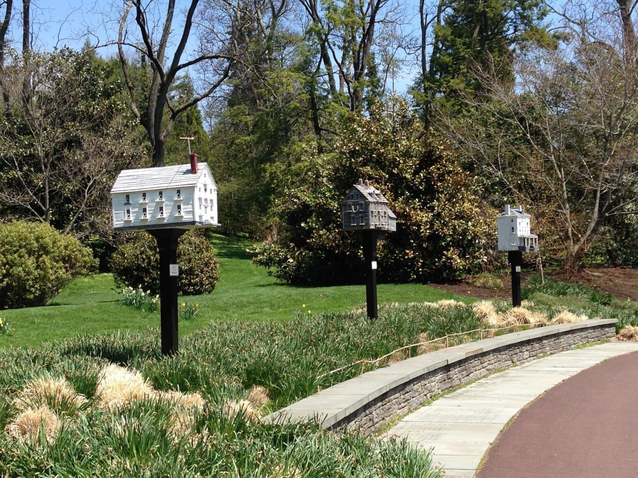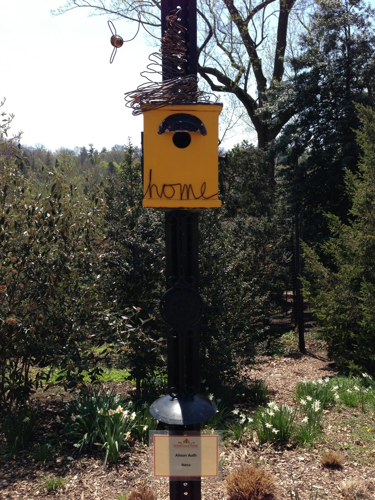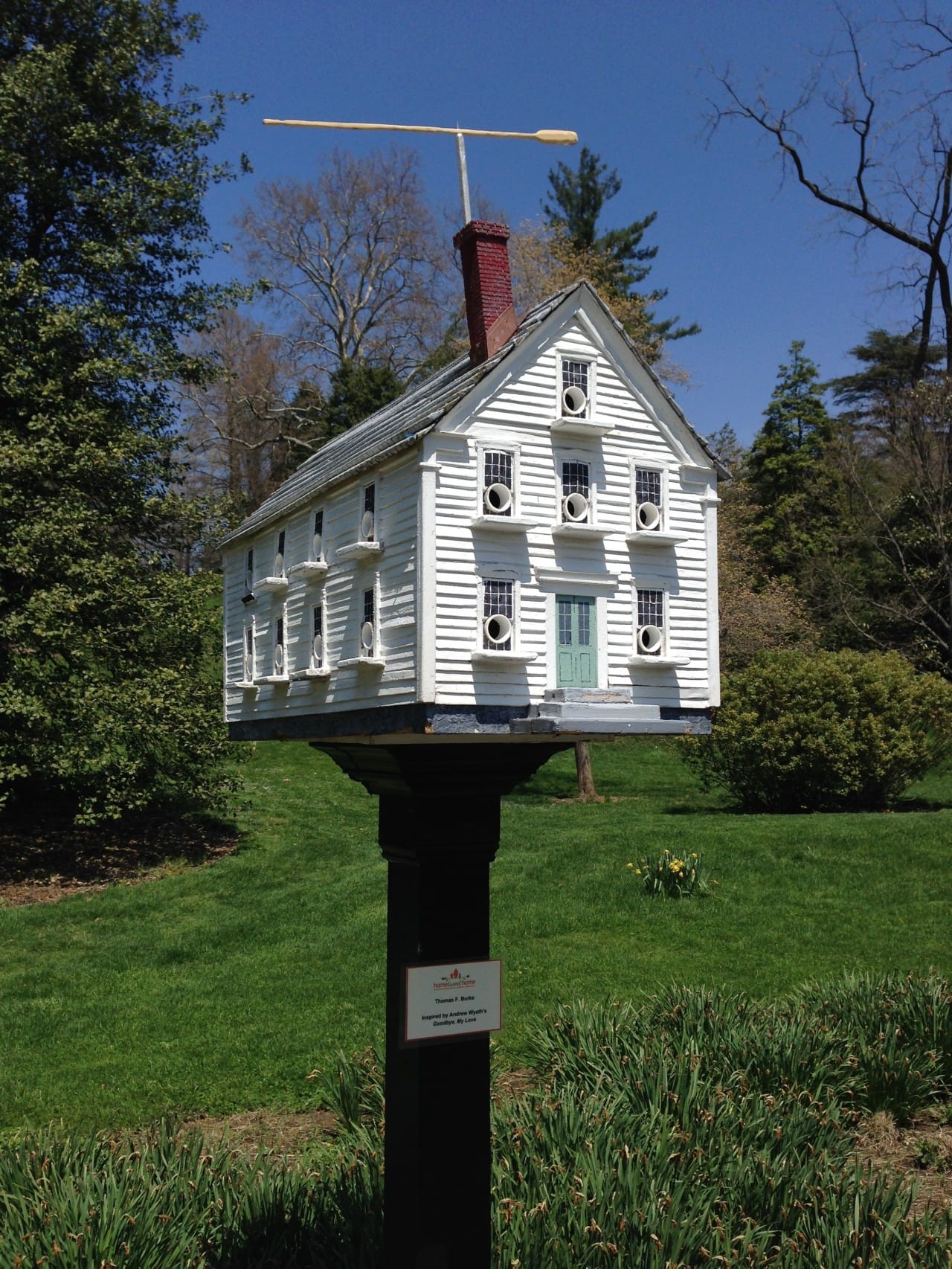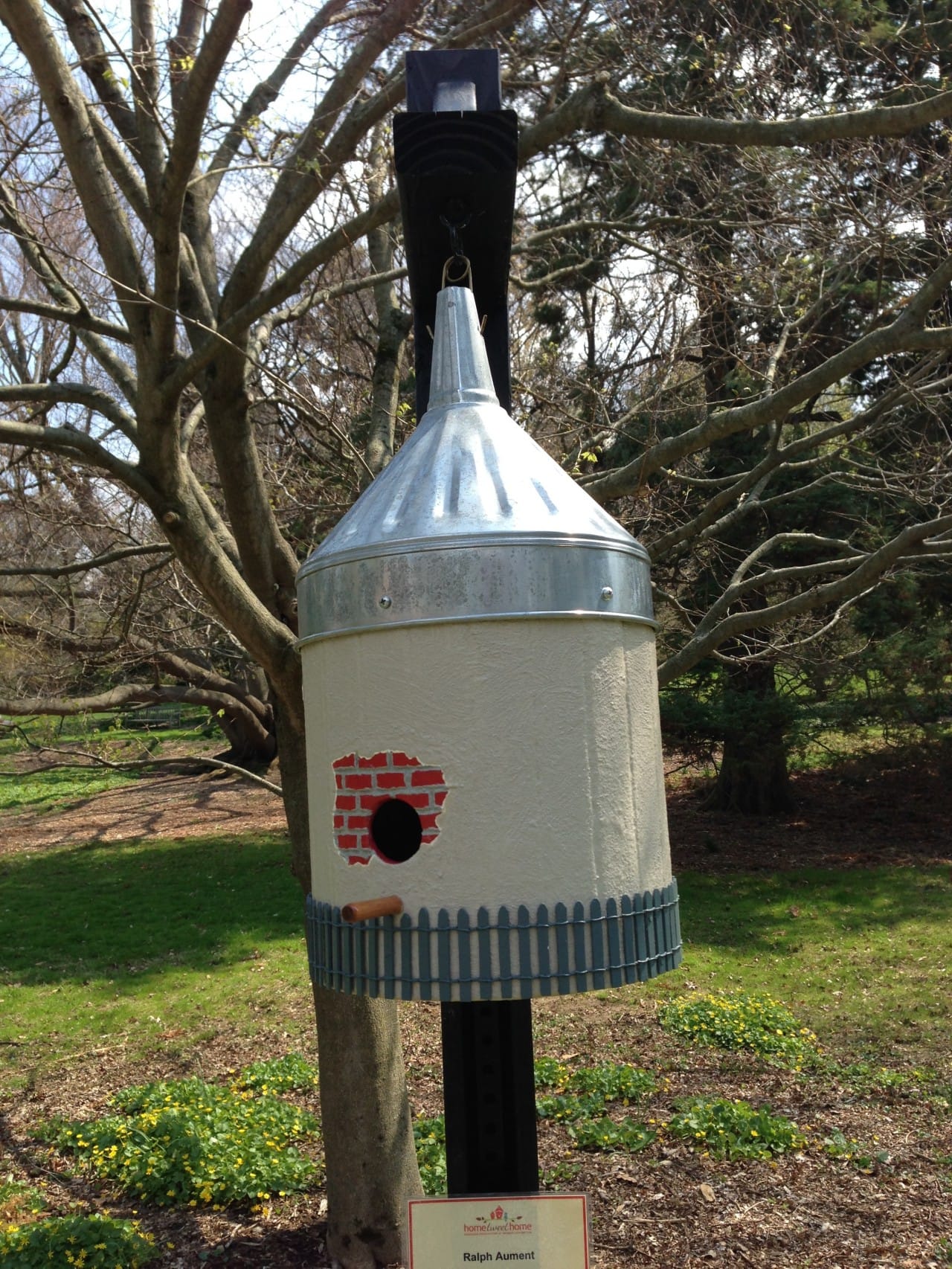 Last Saturday, the Husband and I went to the Morris Arboretum here in Philadelphia to celebrate our 6 month anniversary! It’s where we got married back in October, so we thought it would be a perfect place to go. It was also a completely gorgeous day, so it was definitely a great choice! When we got there, they happened to be celebrating Arbor Day with a “Home Tweet Home” Exhibit of designer birdhouses amongst the grounds! We grabbed a map and spent the next few hours on a birdhouse scavenger hunt!