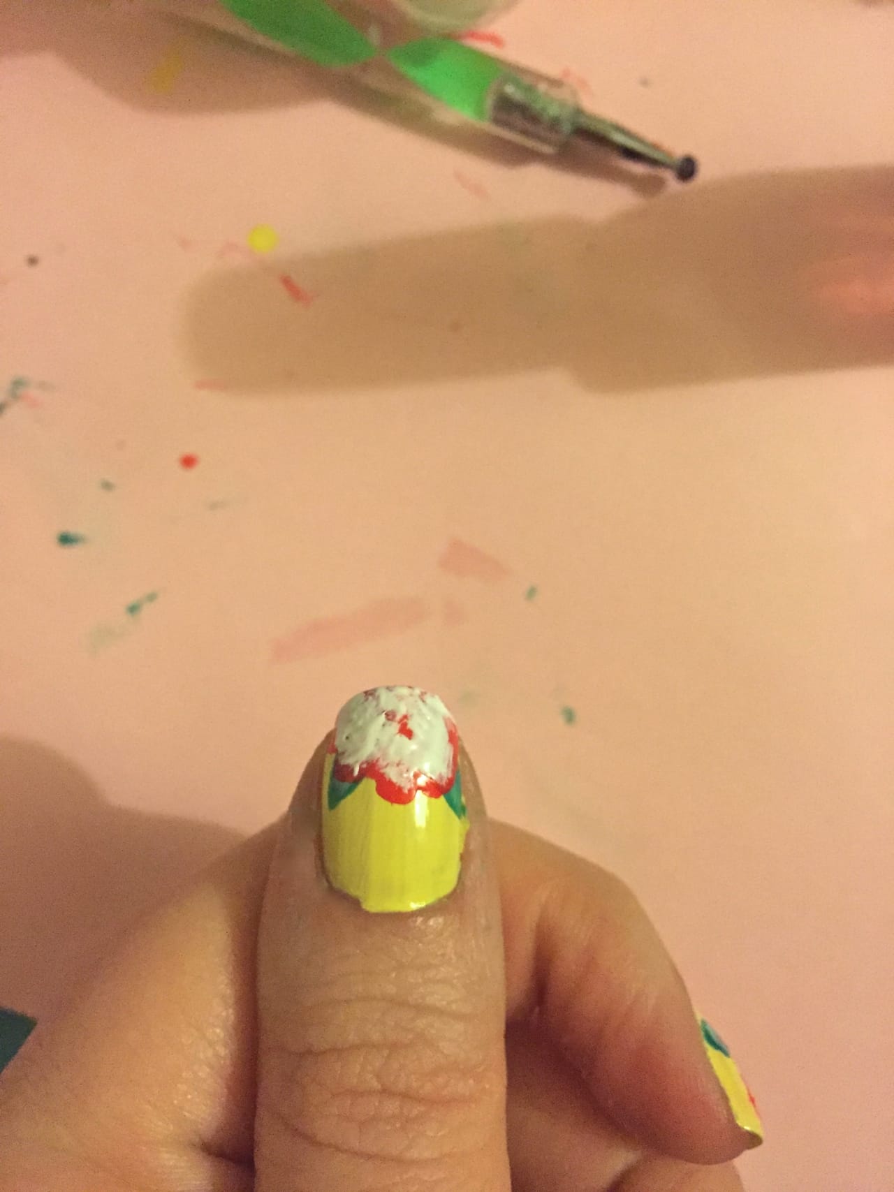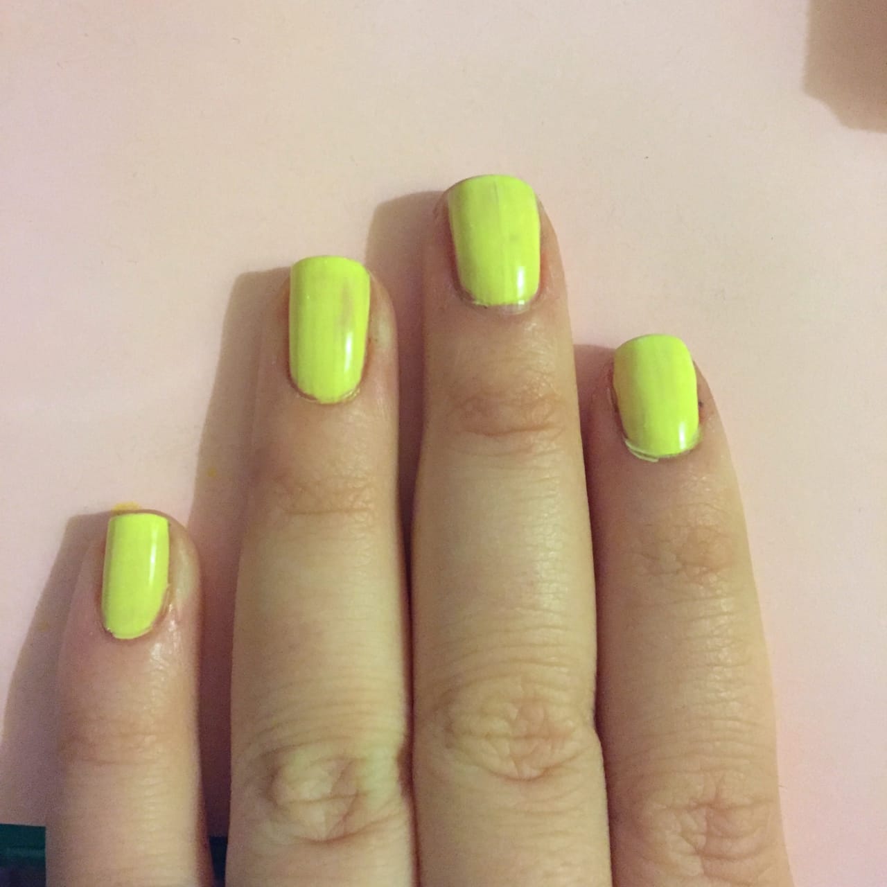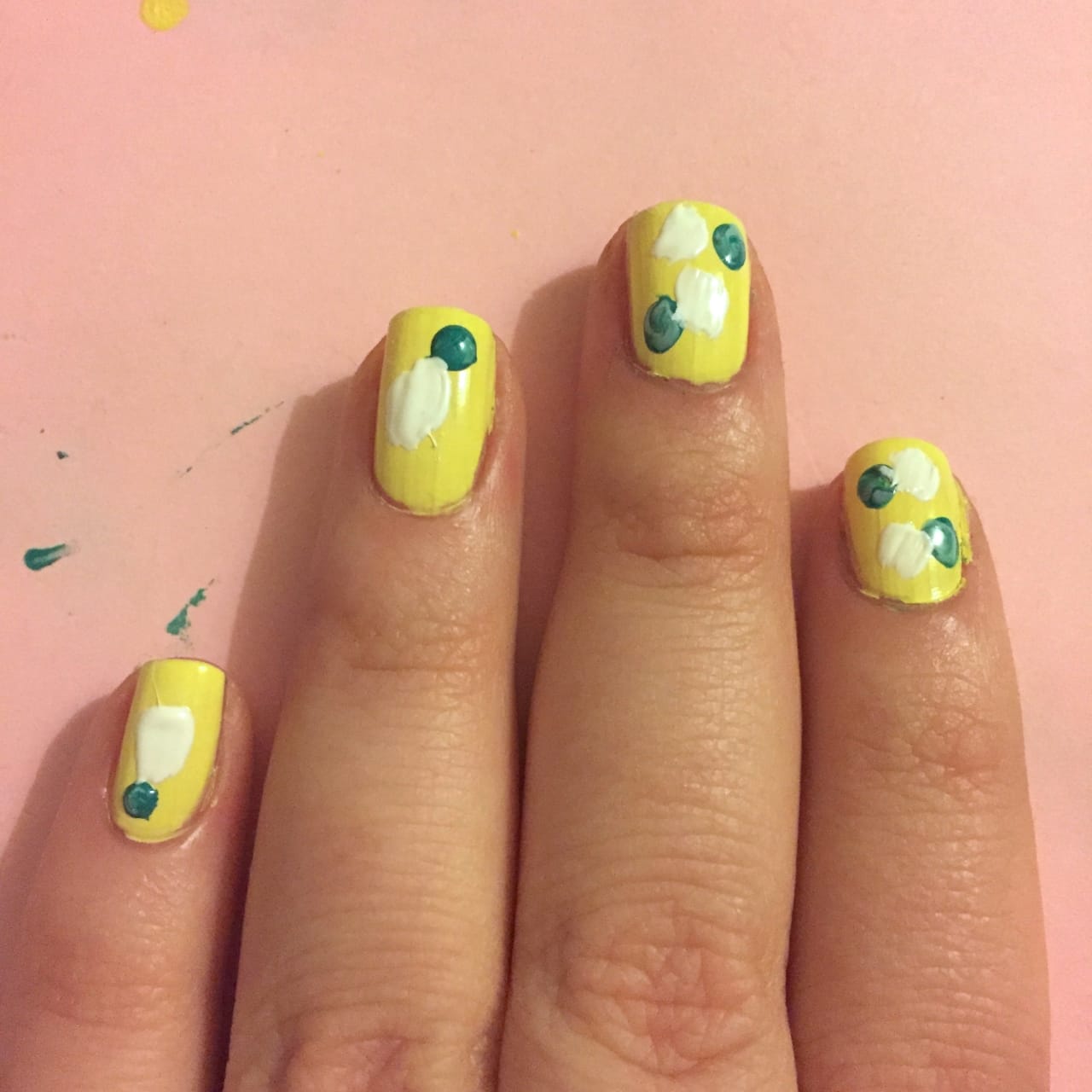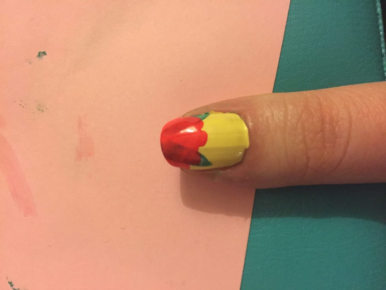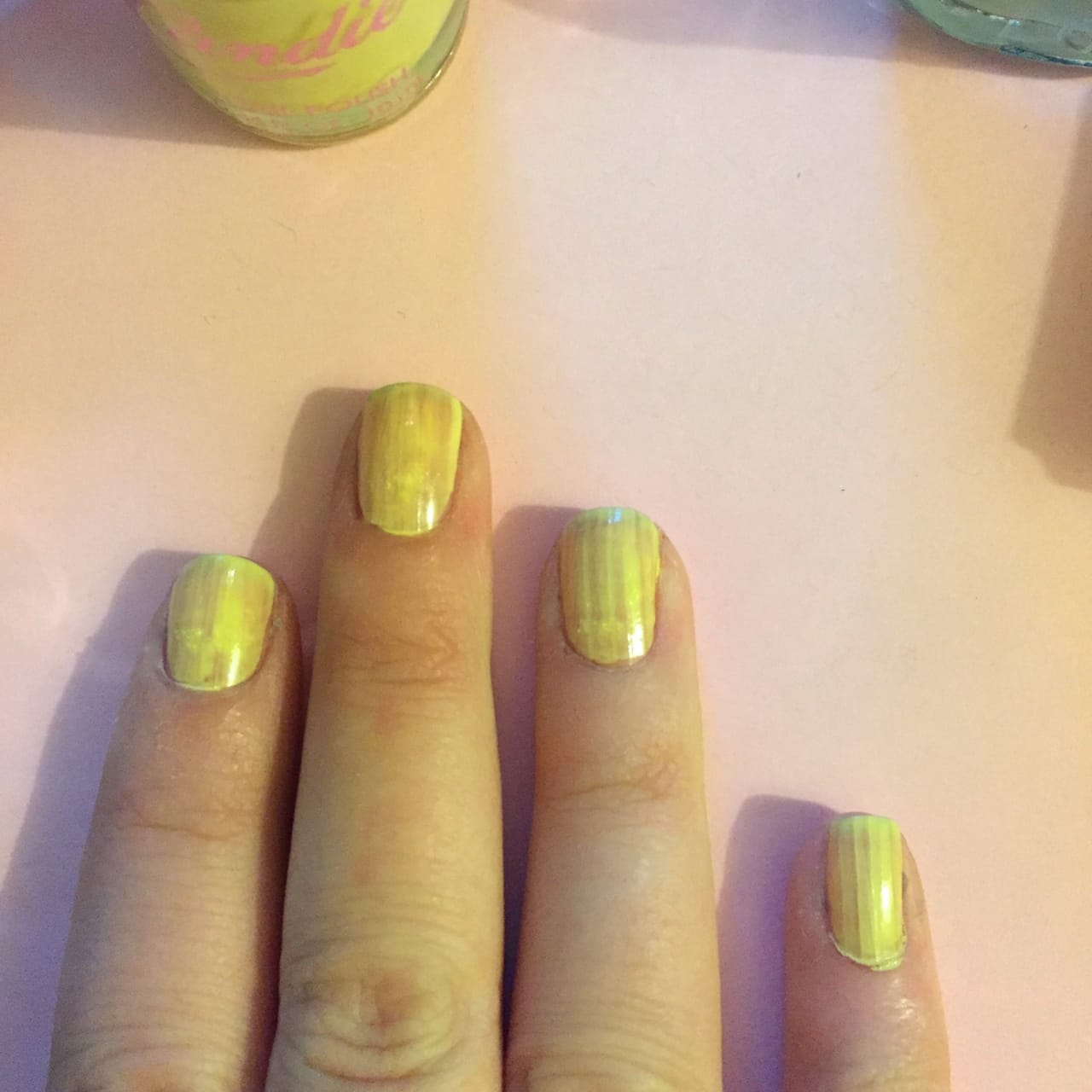 - Starting with clean dry nails, do a coat of yellow and let dry.