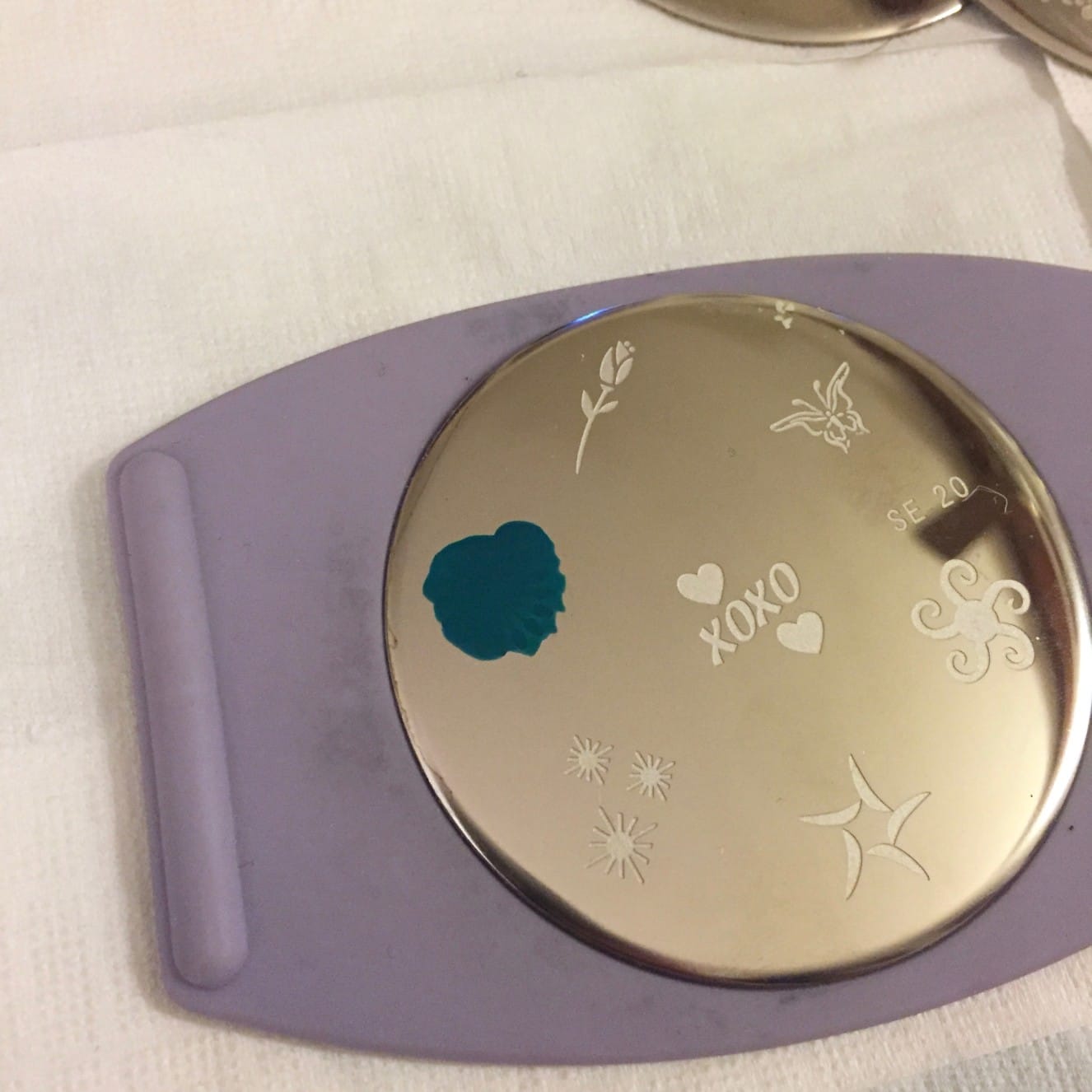- The stamp should have lifted from the disc and now be on your stamper, staring at you! Pick which nail you want to transfer it to and use the same rocking motion to transfer it on to your nail.