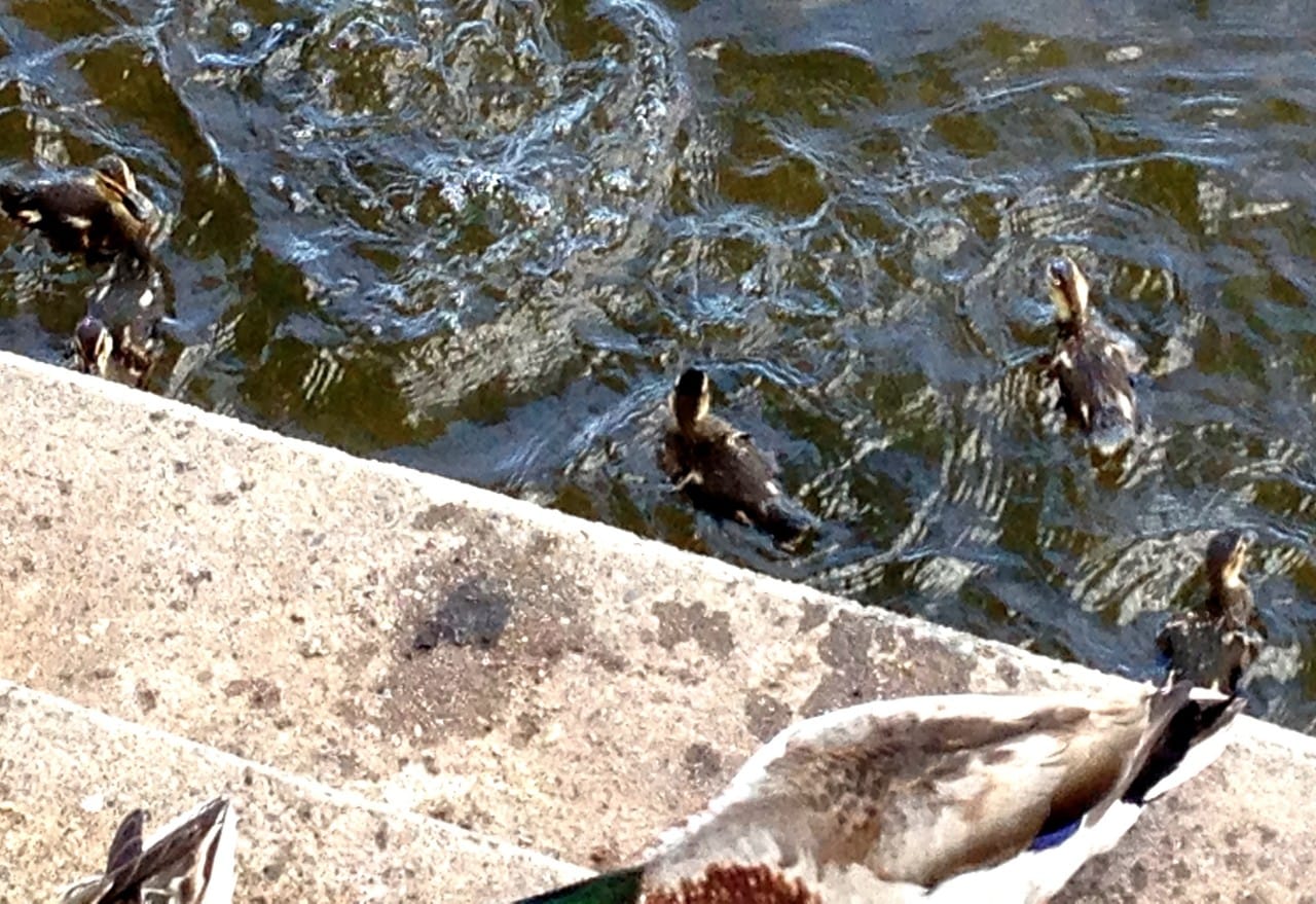After walking around for awhile, I started to get a little overheated. While seeking shade to hide under for a bit, we found some benches by the water and bought some food for the ducks! We made a few friends while there. This one mama was especially starving, and would have eaten out of our hands if we let her. She followed me around quacking SO loudly waiting for more food. The babies bobbing around in the water were just as cute as she was!