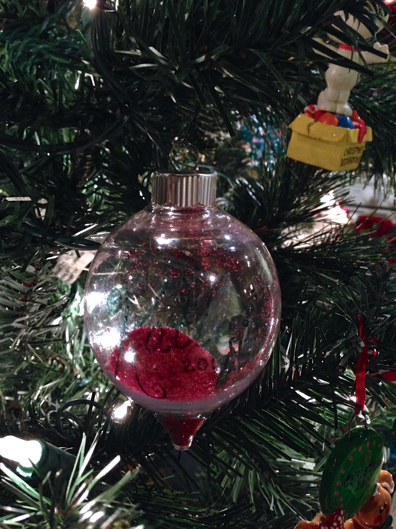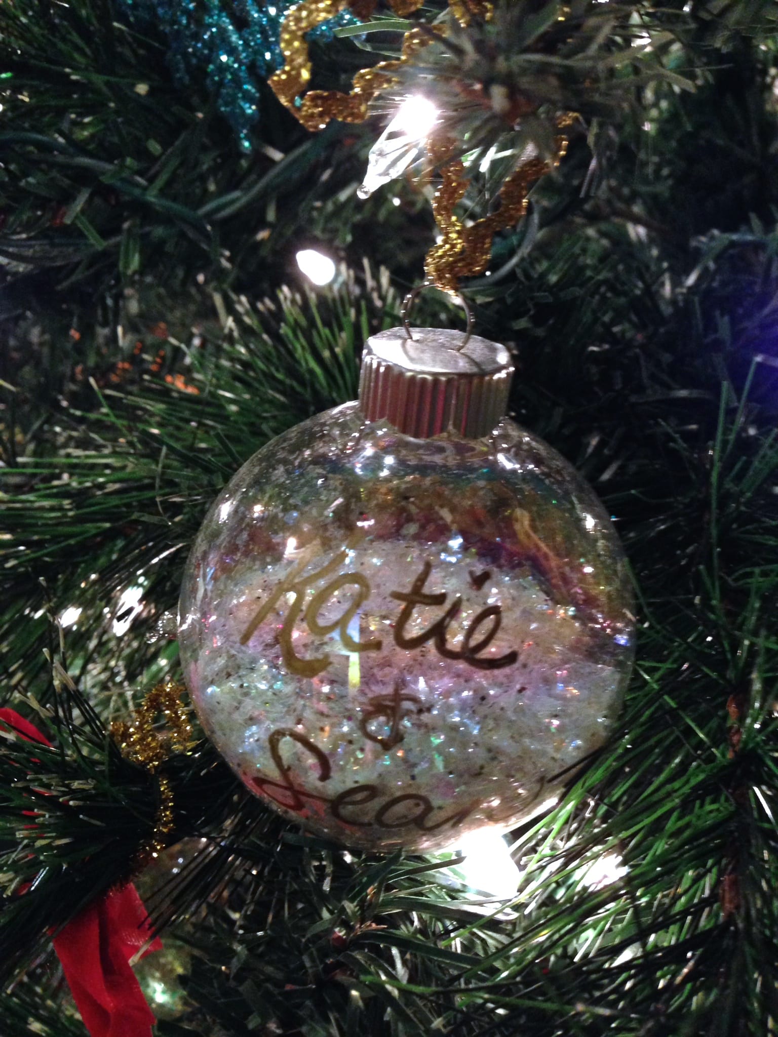 - Put the top back on the ornament, making sure it is secure, and give it a shake! This will make the little flecks of glitter stick to the sides of the ornament.