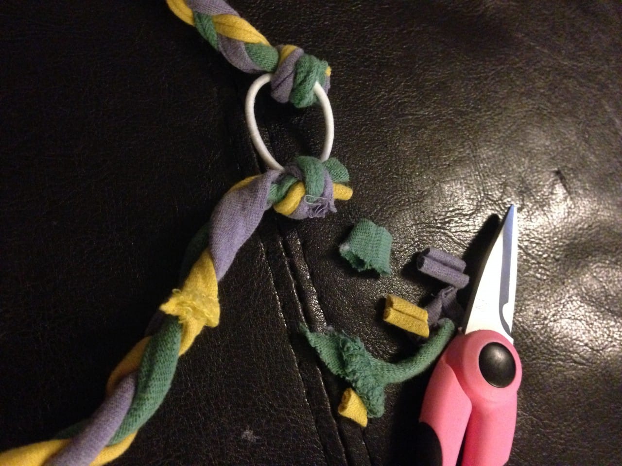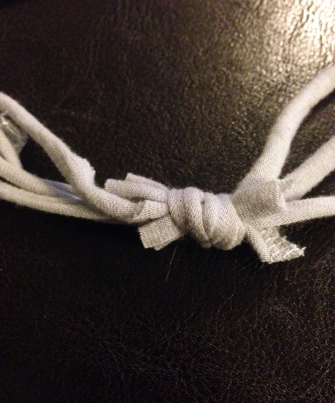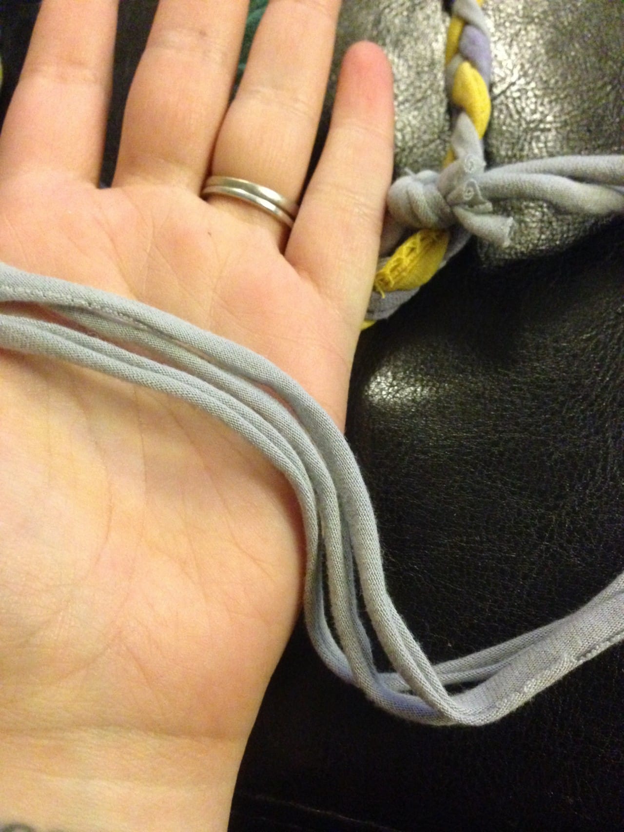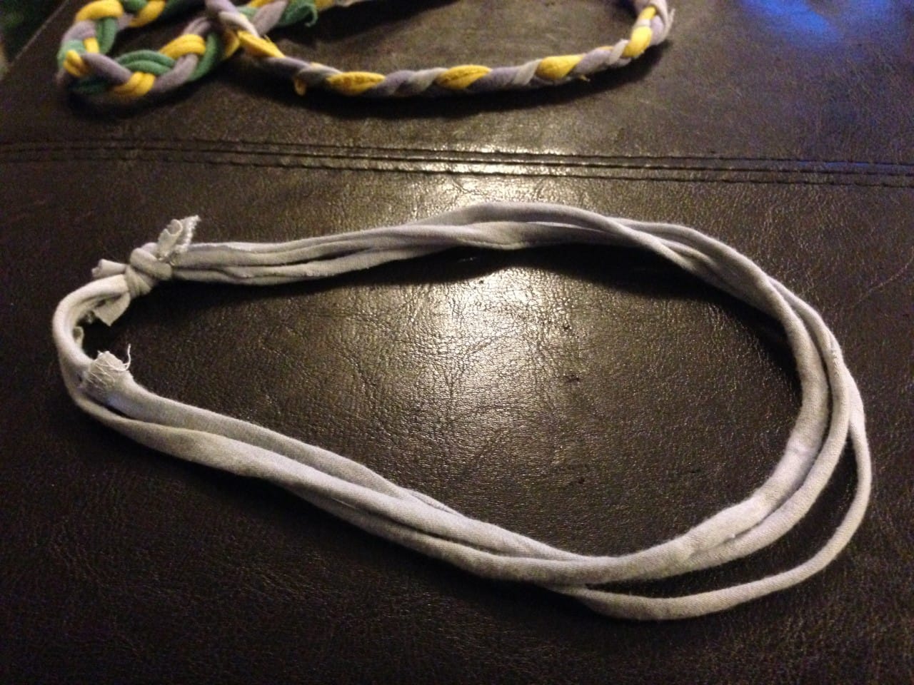 - If the thought of braiding just completely exhausts you, you can still have an adorable headband. Just take those three t-shirt yarn strips, lay them nice and flat next to each other, and knot all the ends together. No braiding, no hair elastic. SUPER CUTE. {see below}