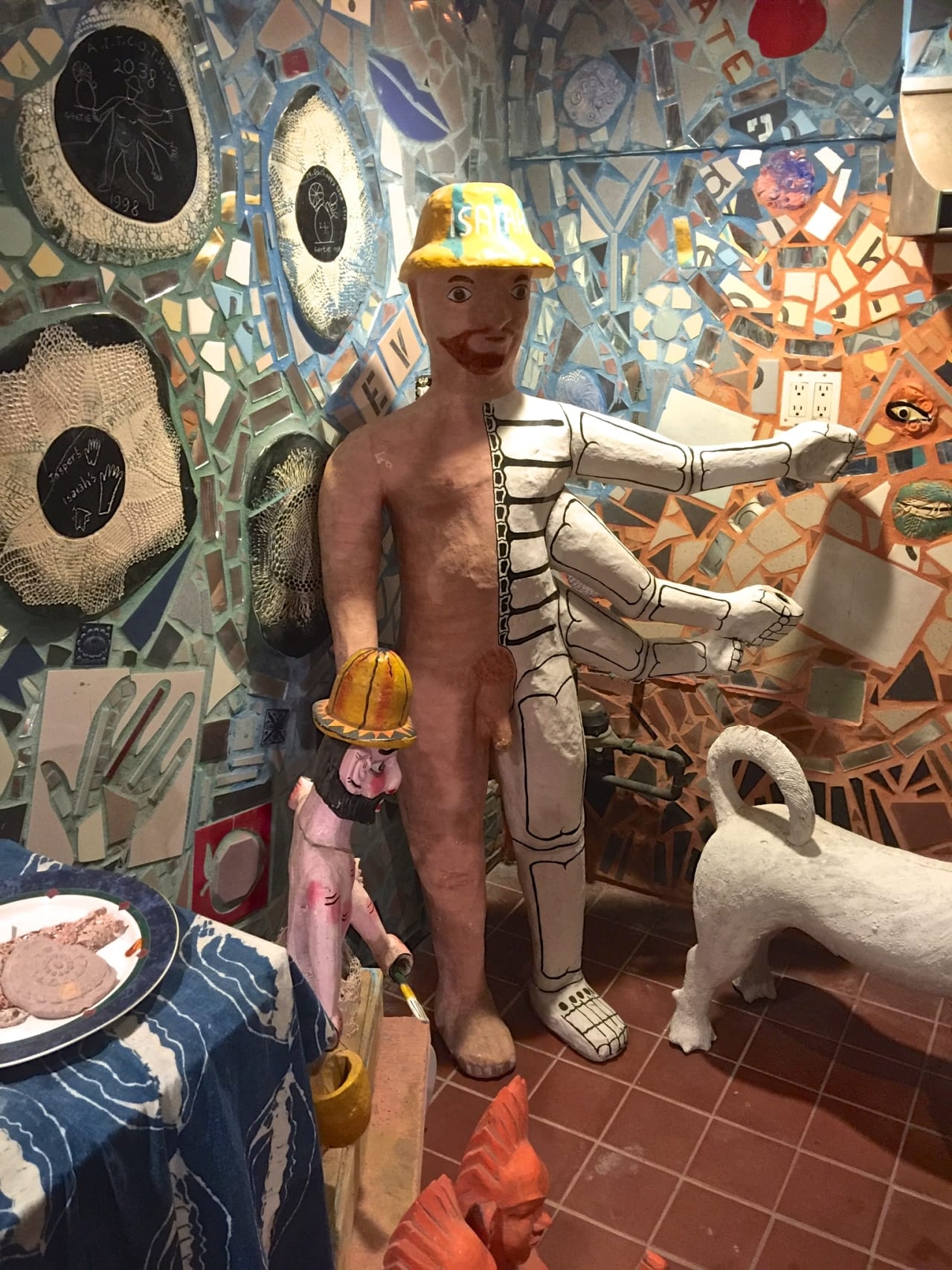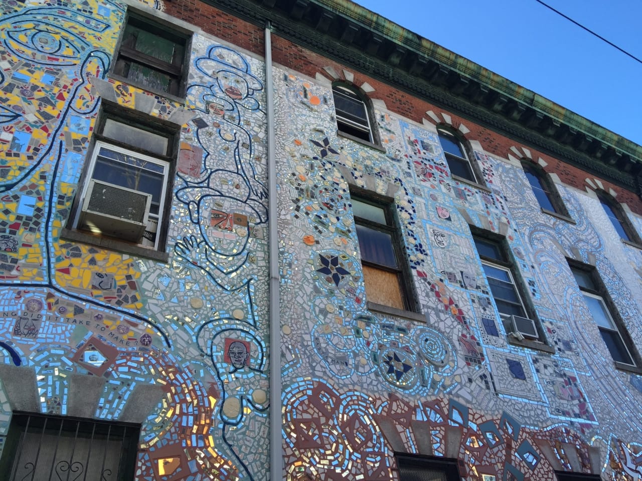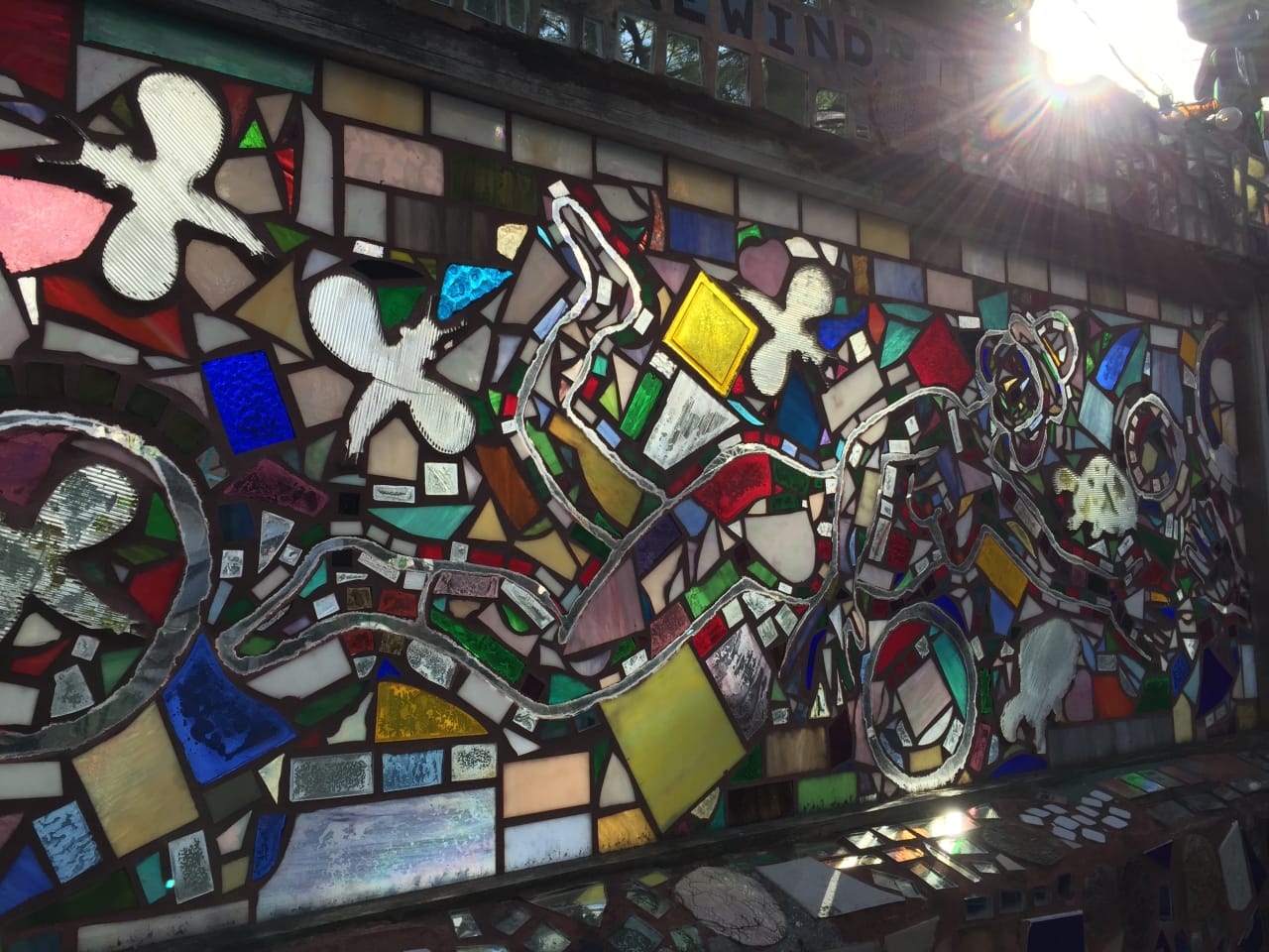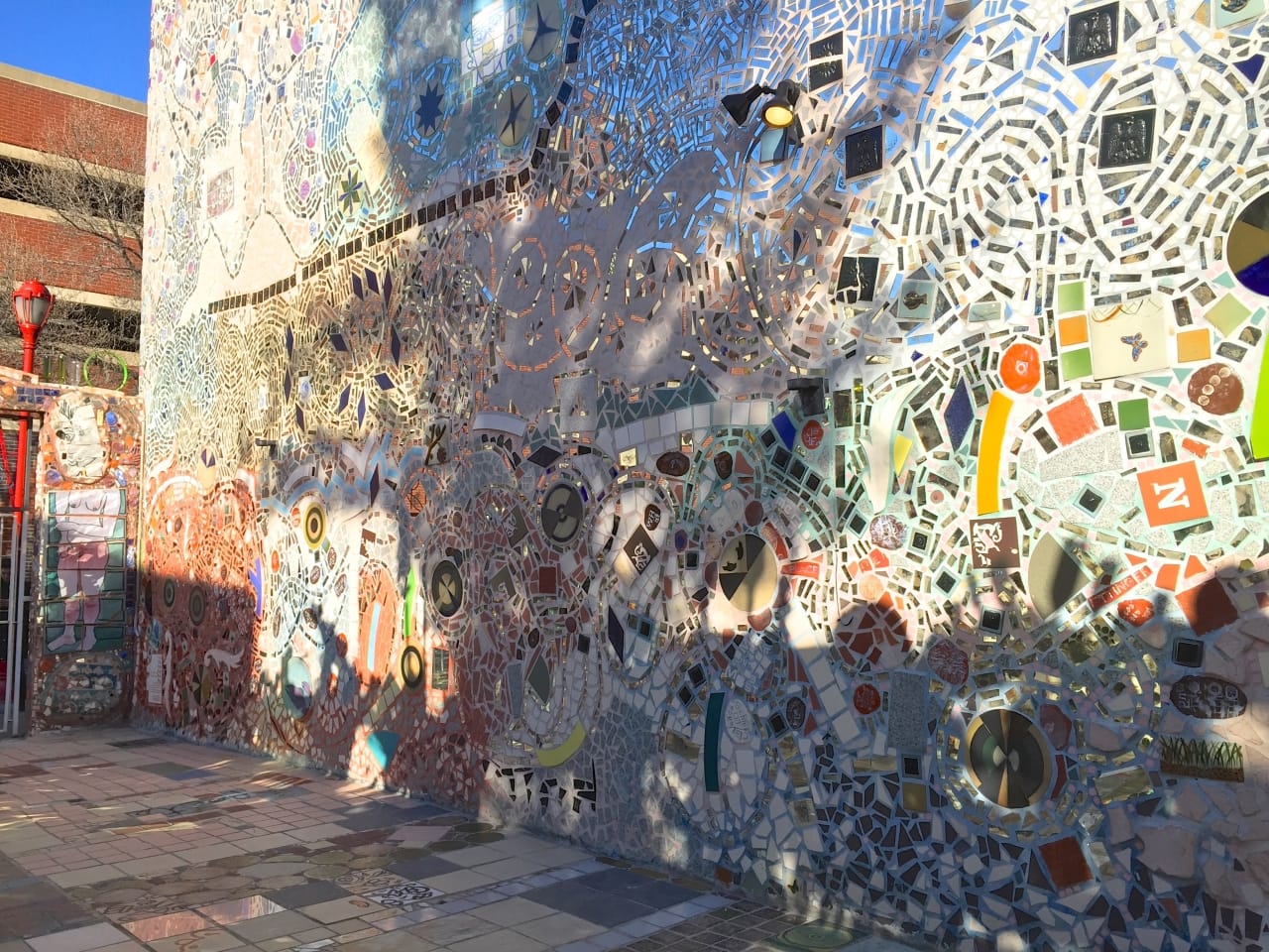One man- award-winning artist Isaiah Zagar- is responsible for over 200 mosaic walls in Philly and around the world. While on the tour, Isaiah dropped by and said hello to everyone, which was pretty awesome. His mosaics are truly spectacular, and not your typical tile! There are dishes, bicycle wheels, broken down mirrors and more within the walls. Check out some of the artist’s works below, and make sure you read up on Isaiah and his Magic Gardens!