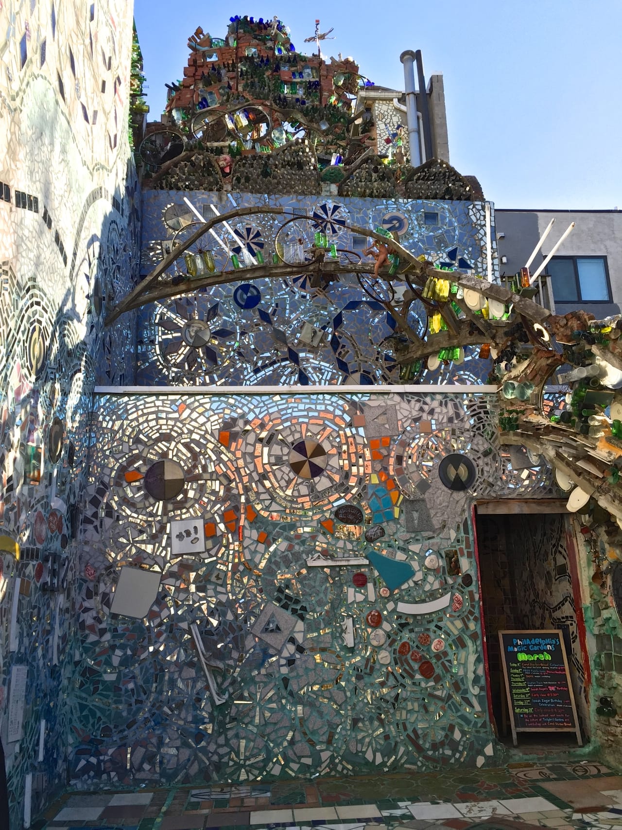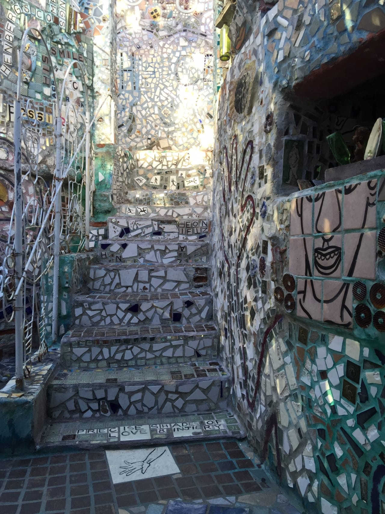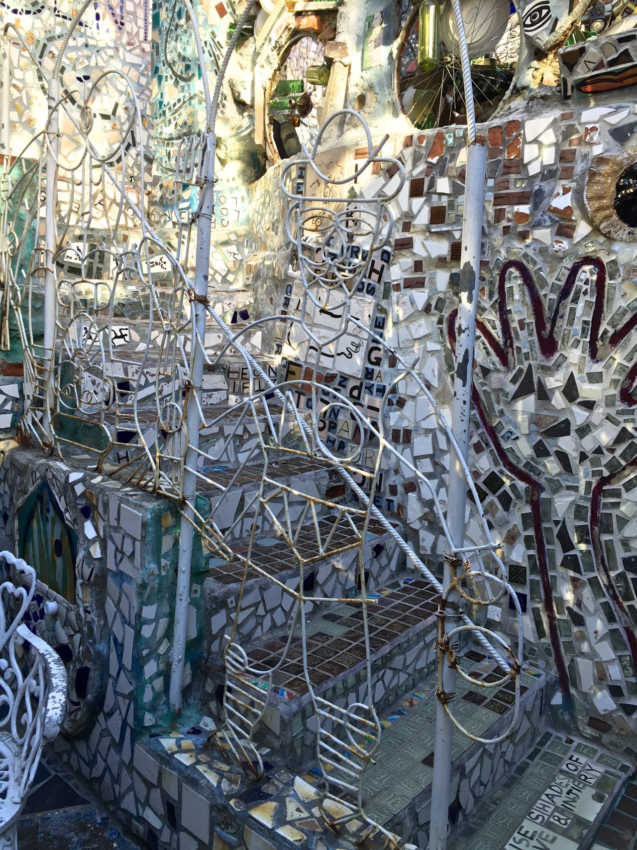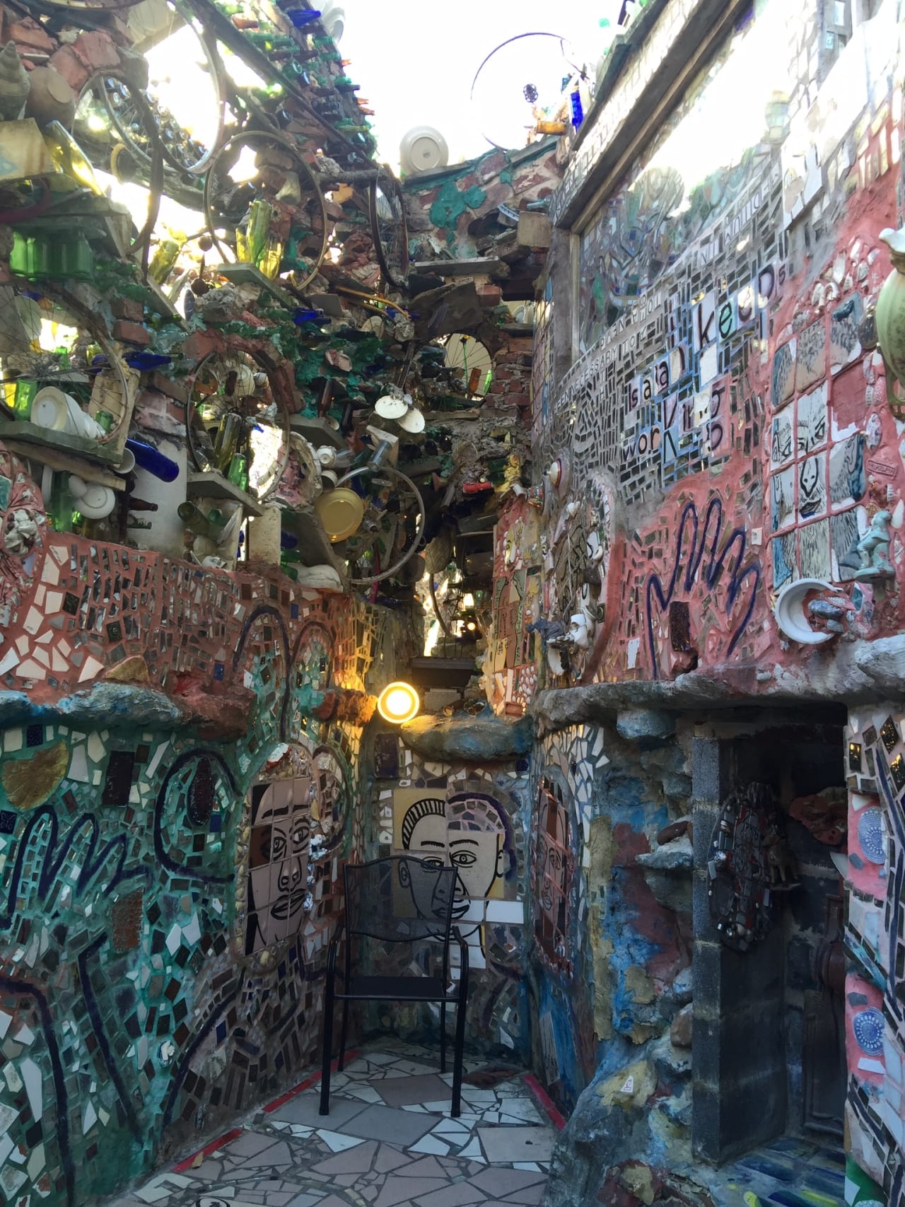 Last week, Husband and I went on a guided tour of the Philadelphia’s Magic Gardens. I’ve passed it probably a thousand times in the many years I’ve lived here, but somehow never visited. What a shame! The mosaics were SO awesome, and I can’t wait to go back and explore on my own to get more photos. Still, the hundred pics we took during the tour will probably do for now. 🙂