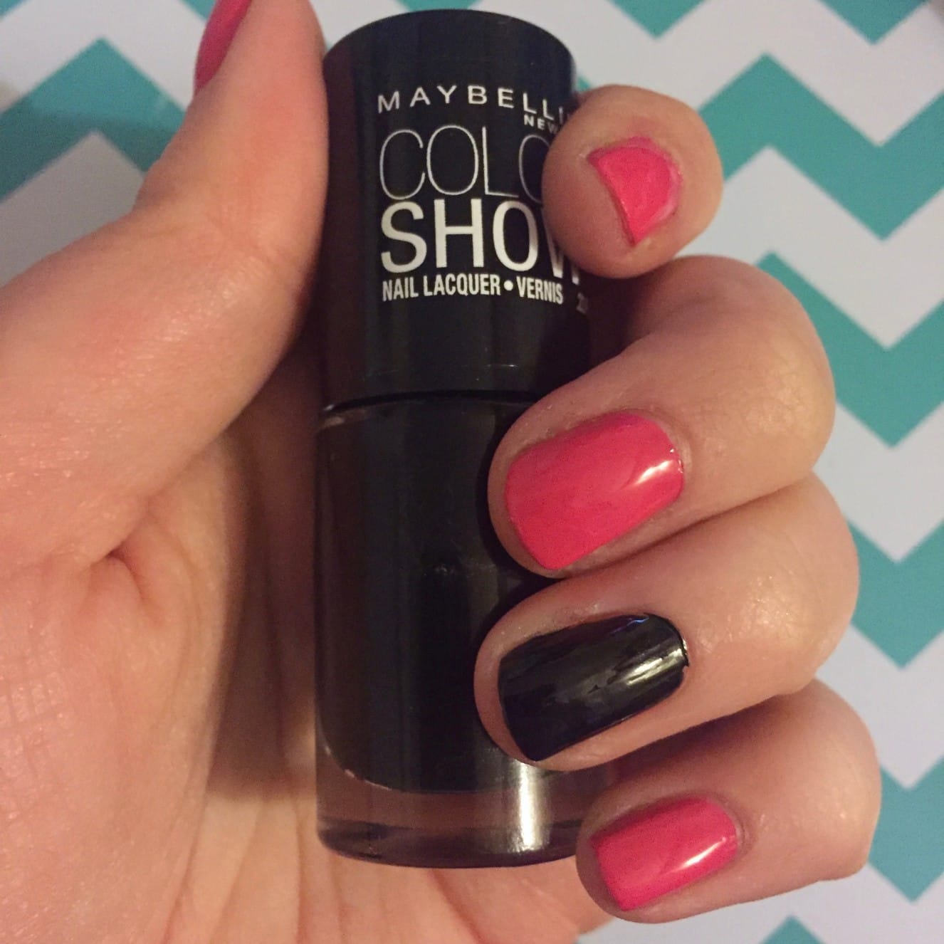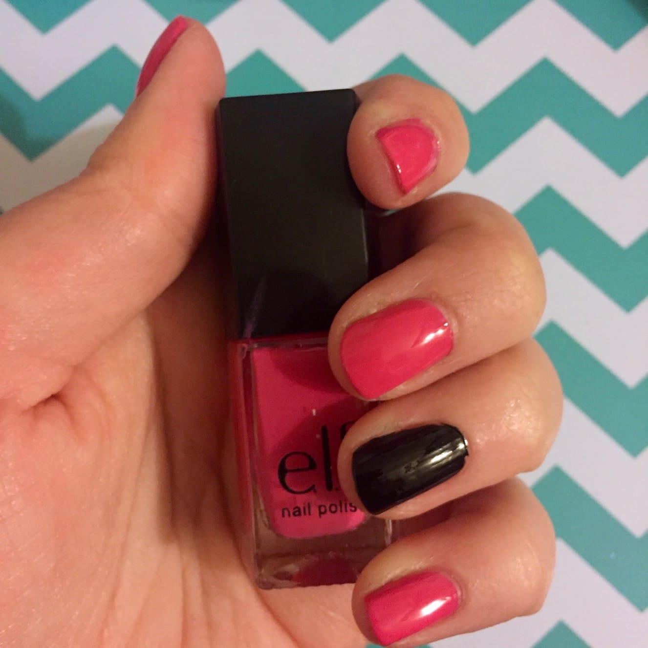- Begin with clean, dry nails. Do one coat of pink on all nails except your accent nail (I picked my ring finger for this.) Let dry.