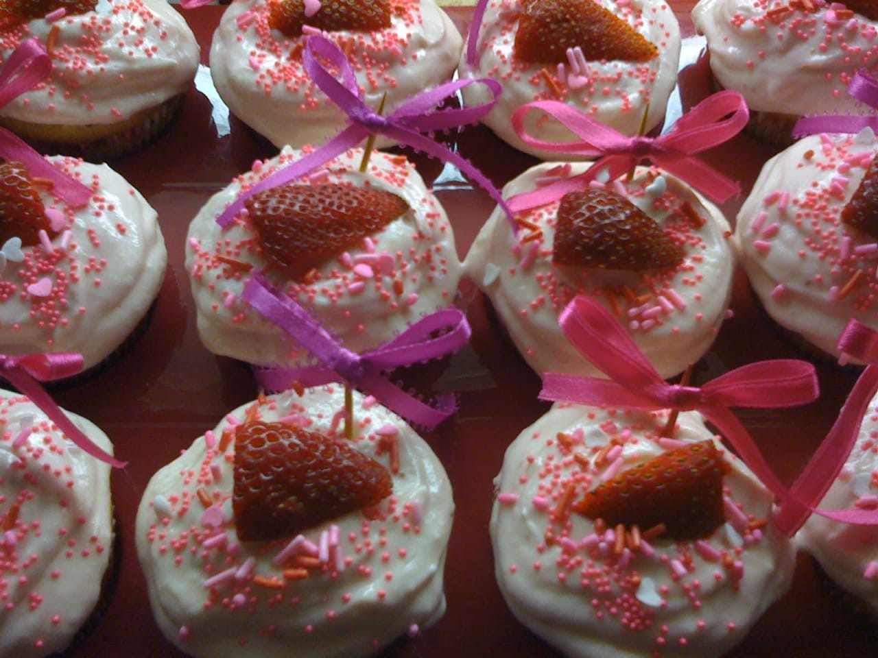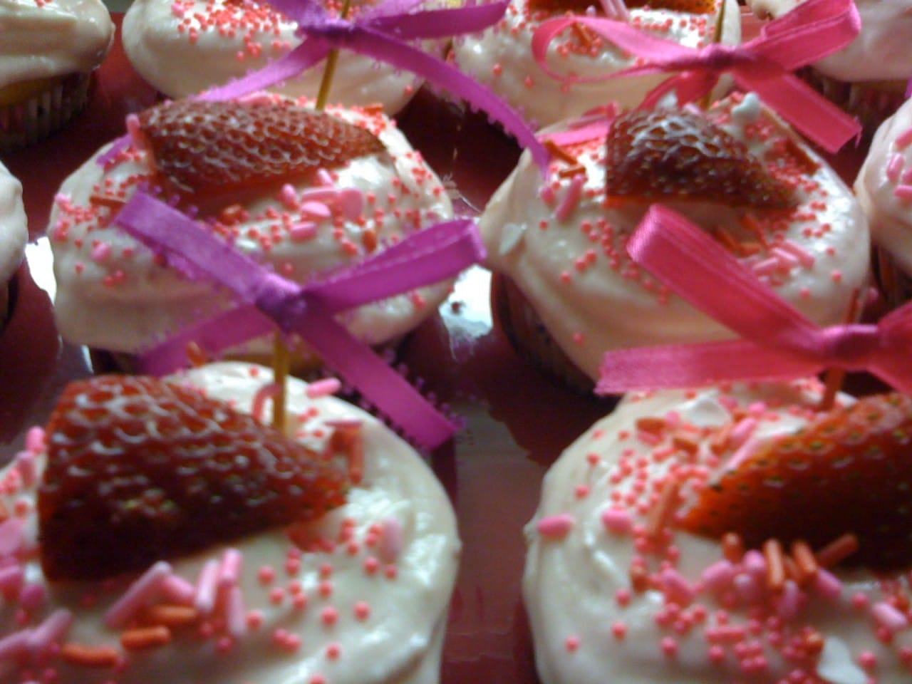 - While cupcakes cool, using a low setting on your mixer, beat together the Cool Whip and a shot of strawberry syrup/liqueur.