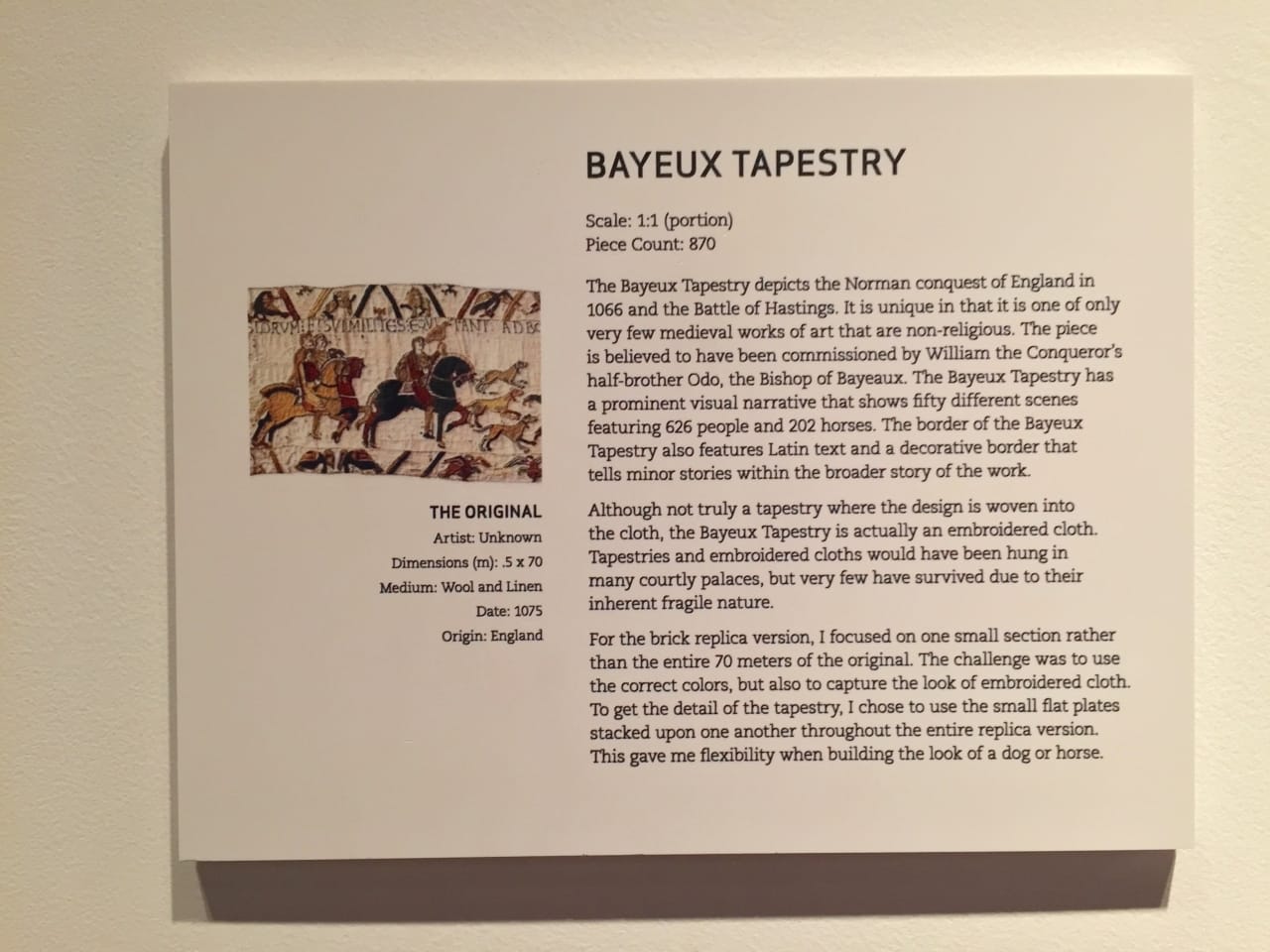 When you first come in to the exhibit, you’re in a room set up like that in an art gallery, with masterpieces hanging on each wall.