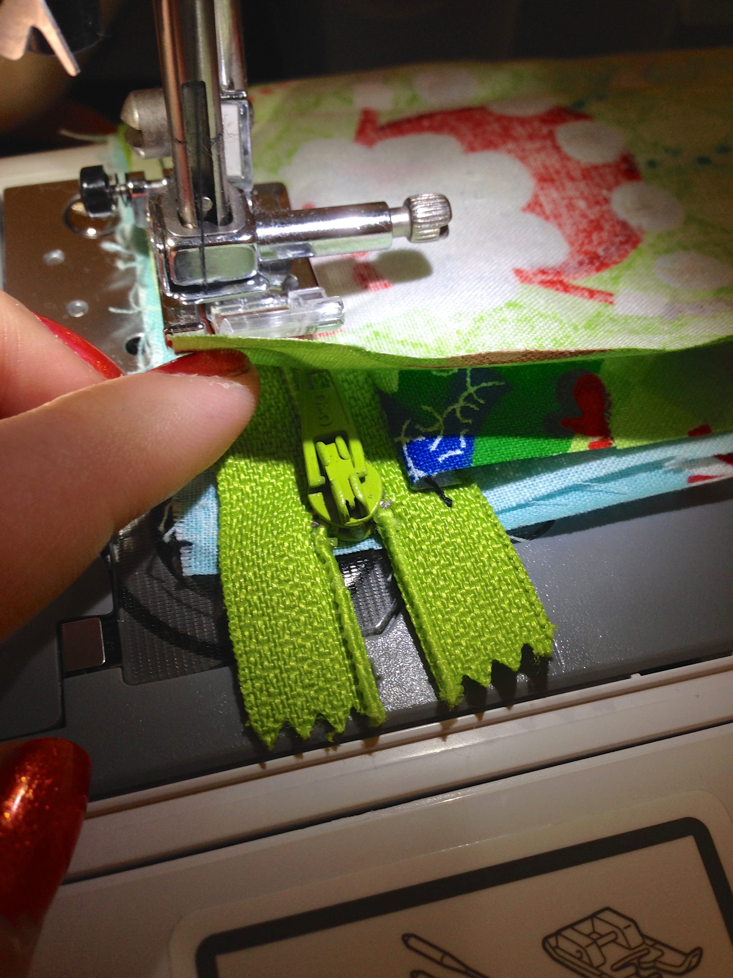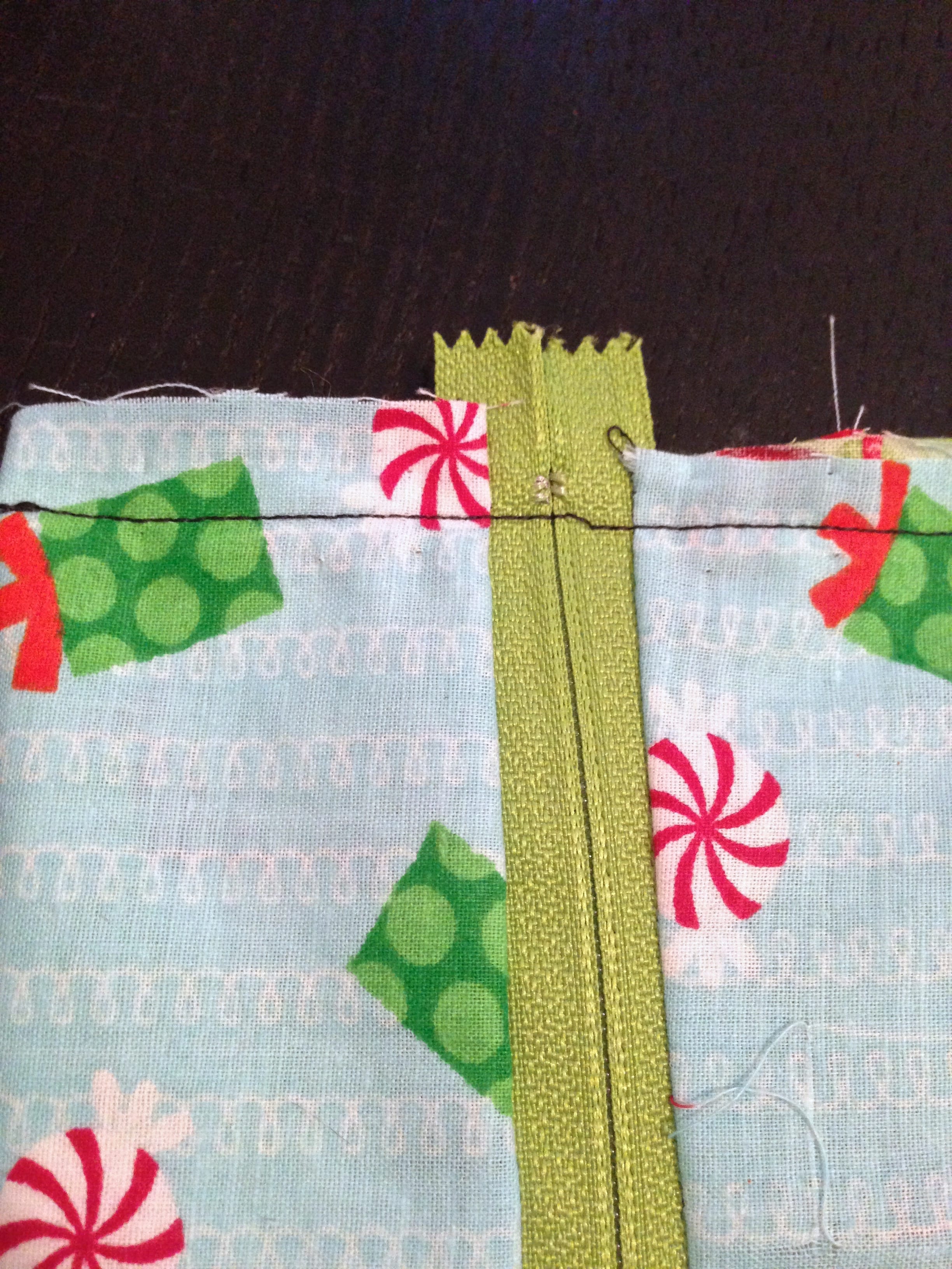 - Sew across the top that is currently zippered. If you have to go across the teeth themselves, that’s fine!