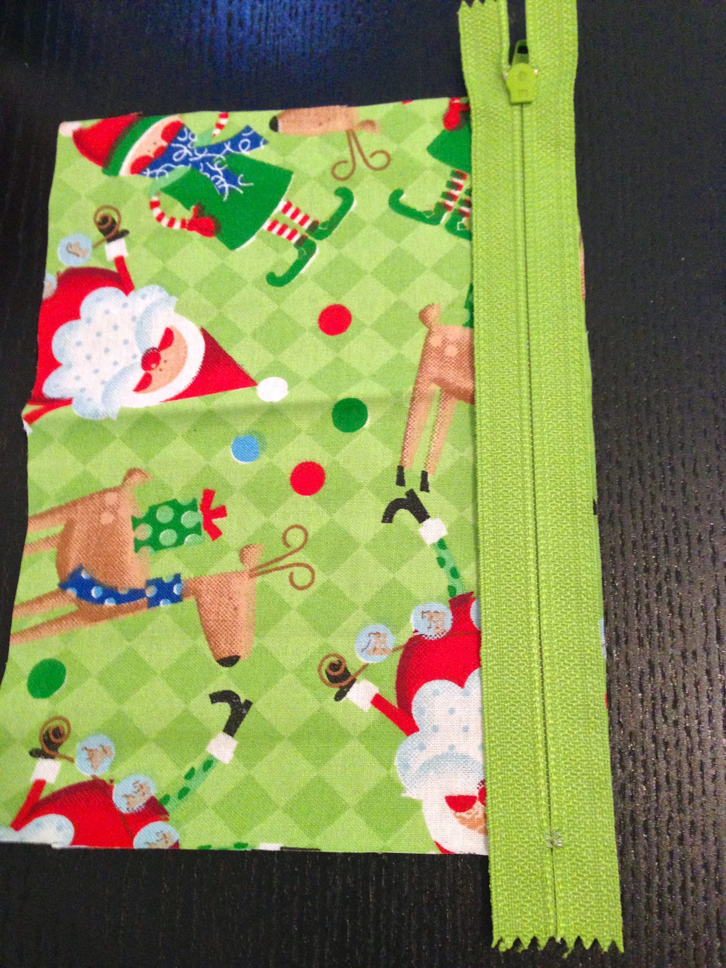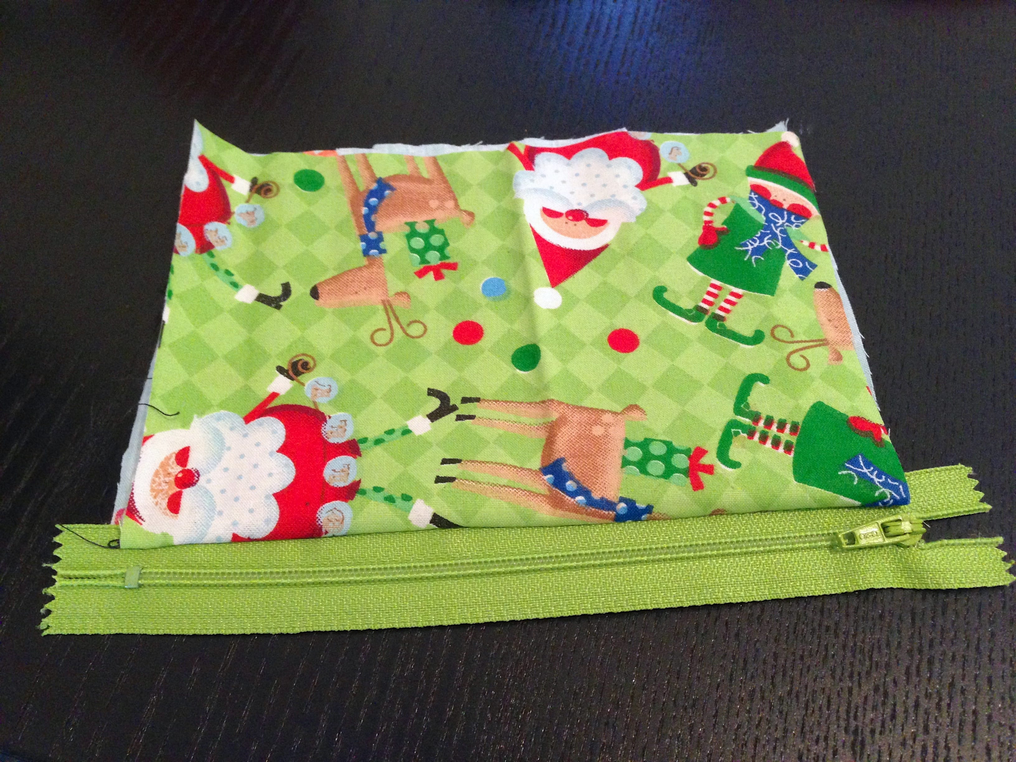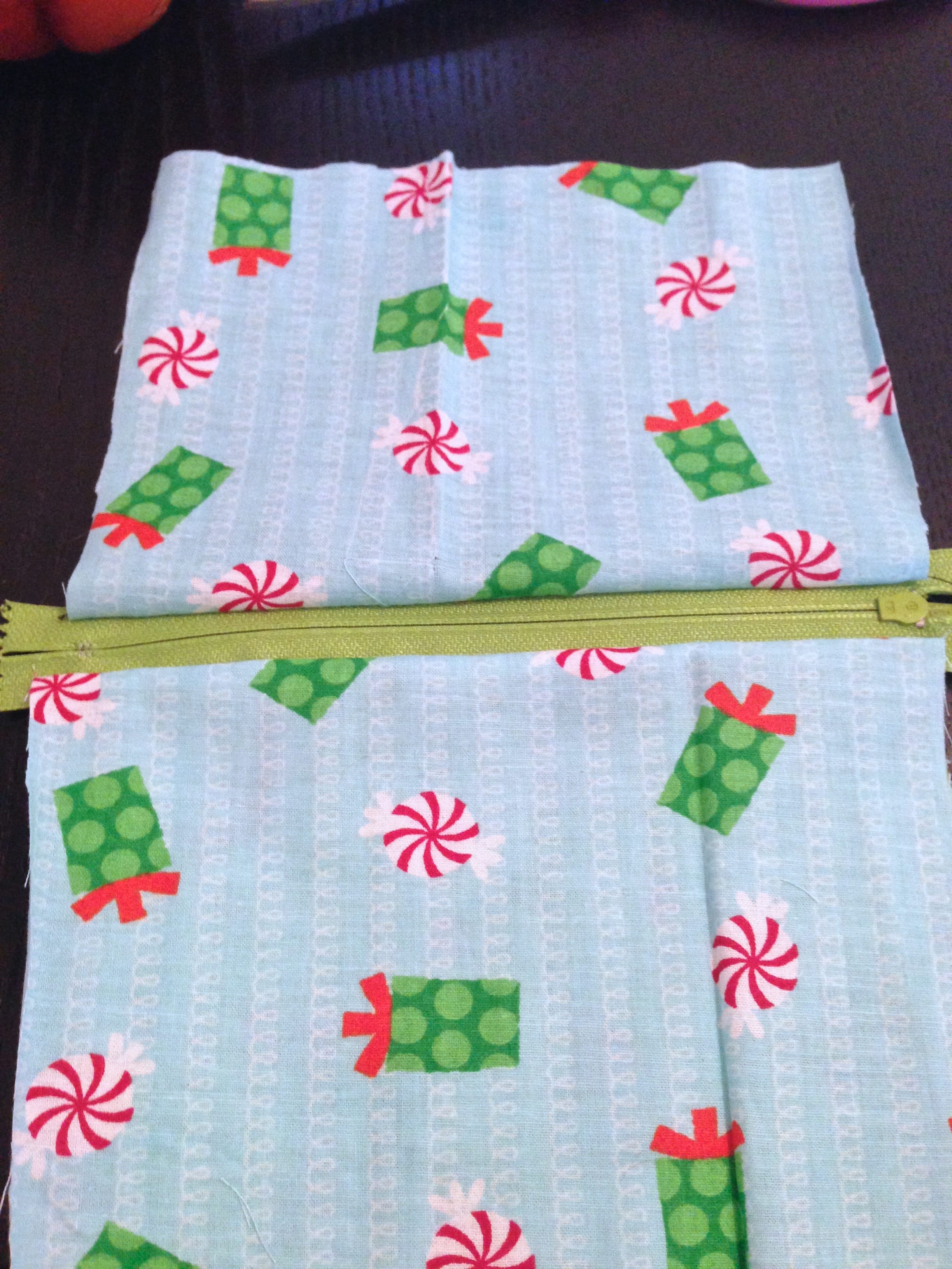 - Lay one interior fabric panel right side DOWN on top, making a neat little zipper sandwich.