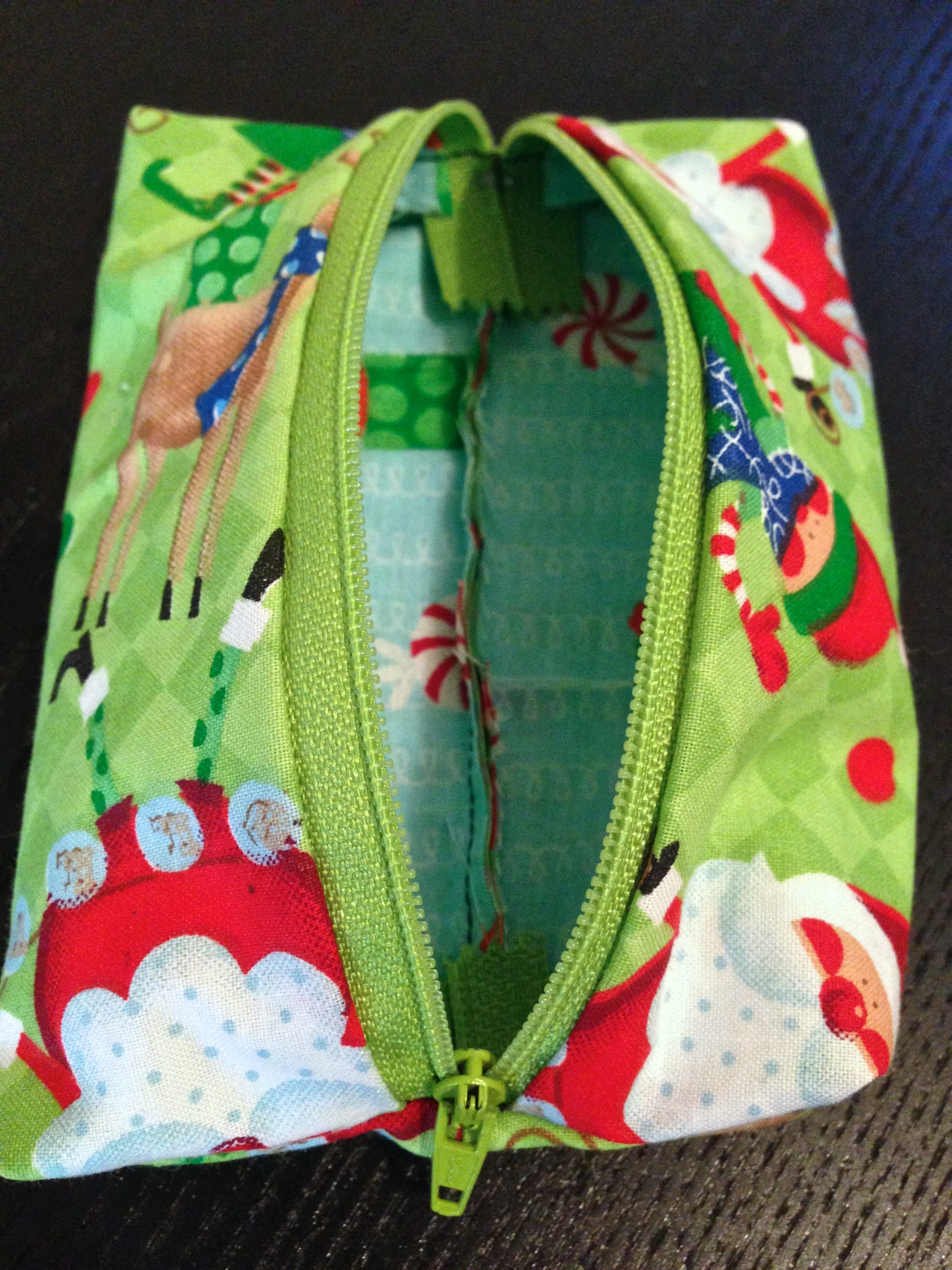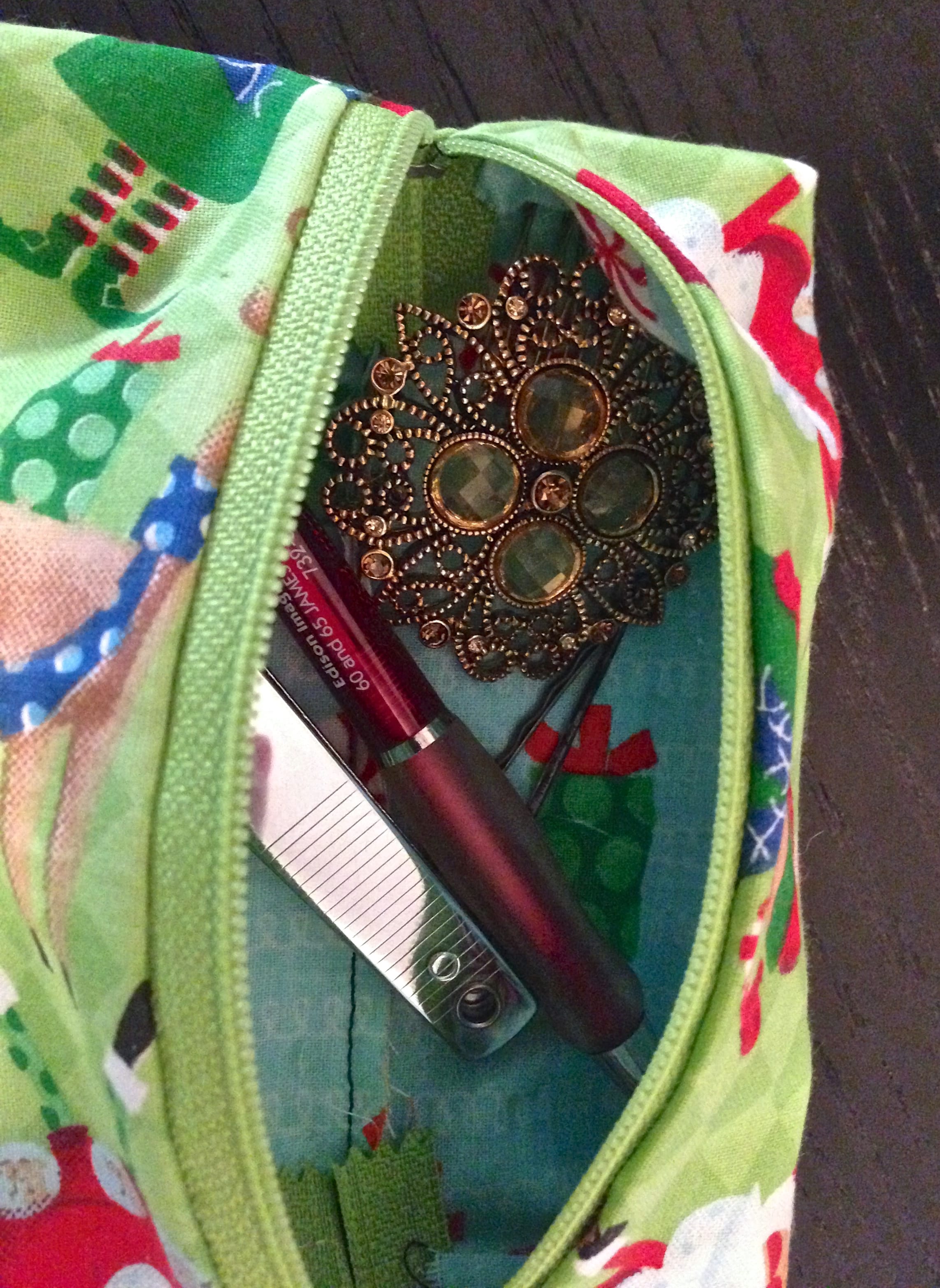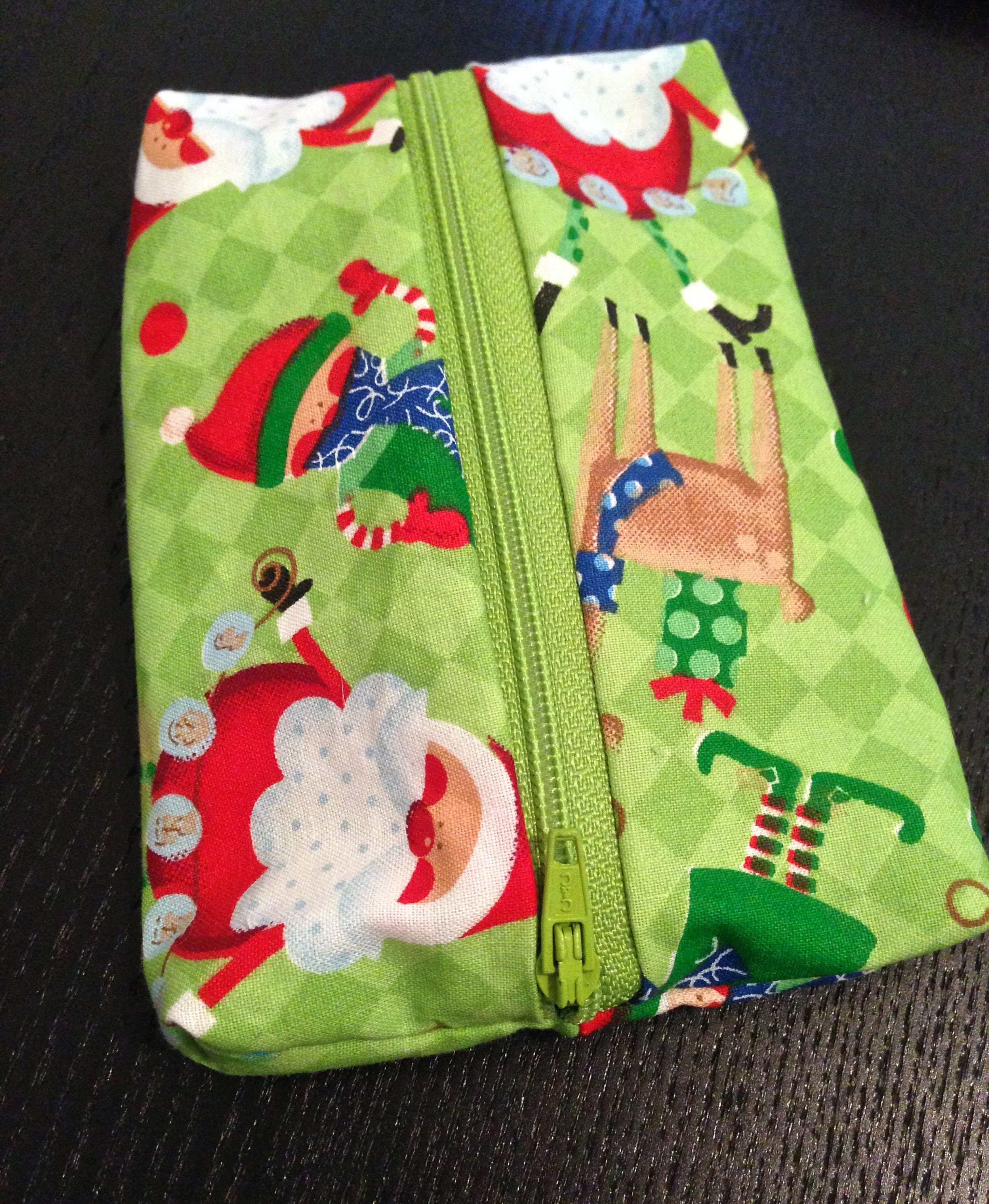 This little bag works up super quickly and is really cute! I’ll be making one for the Husband’s manbag (though I won’t be using Christmas patterned fabric!) so that he can hold the Advil, Chapstick, etc. that I’m always asking him to hold for me. So really, I’m just making the bag for myself. We won’t tell him that part.