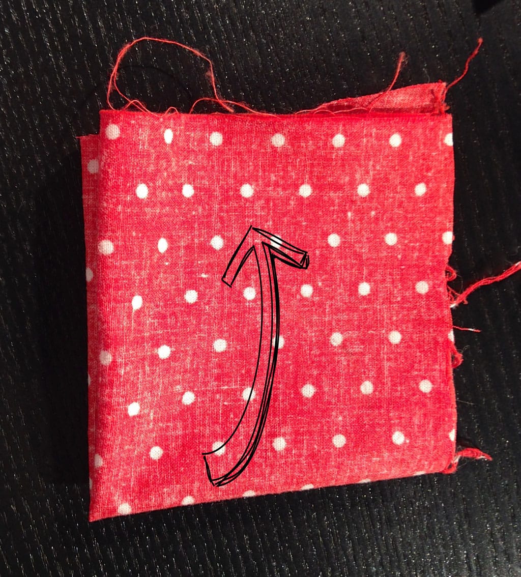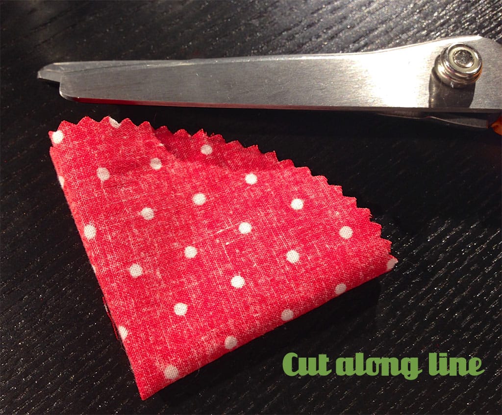 - Follow your penciled sketch and cut the fabric with your pinking shears.