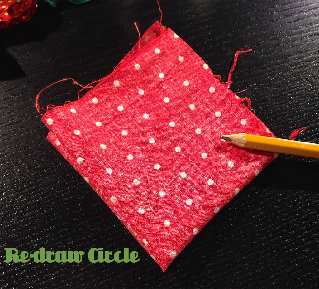 - Using your lid as a guide, sketch a circle around the lid about an inch and a half from the lid. (It’s hard to see, but the pencil is pointing towards it!)